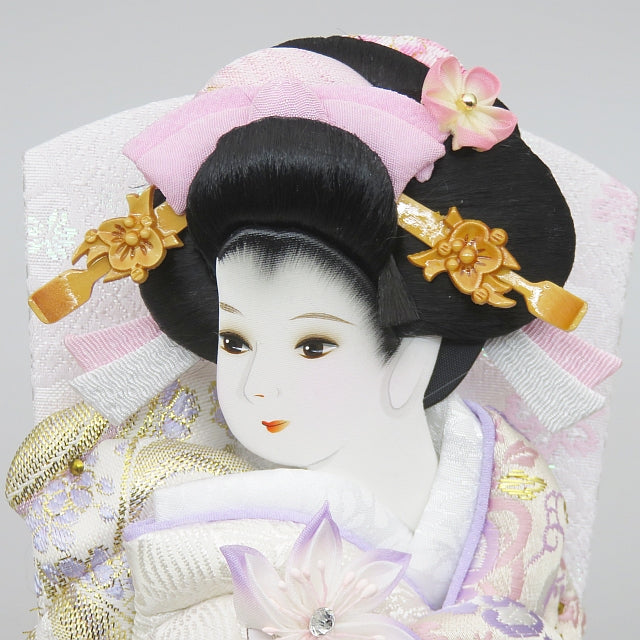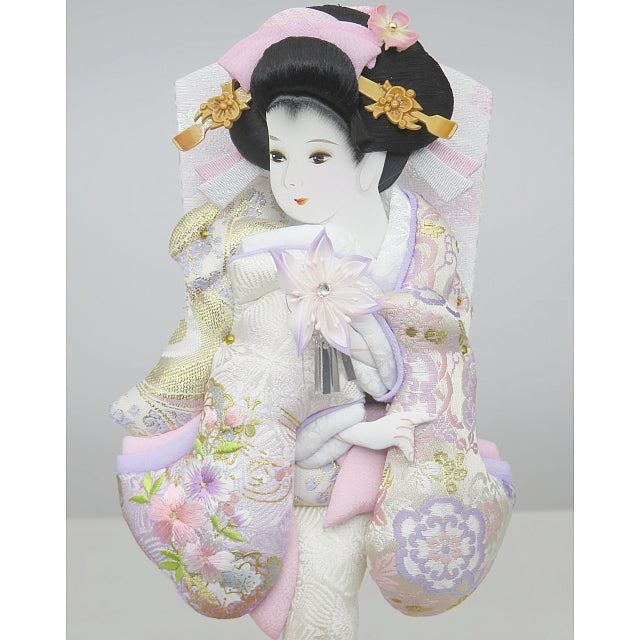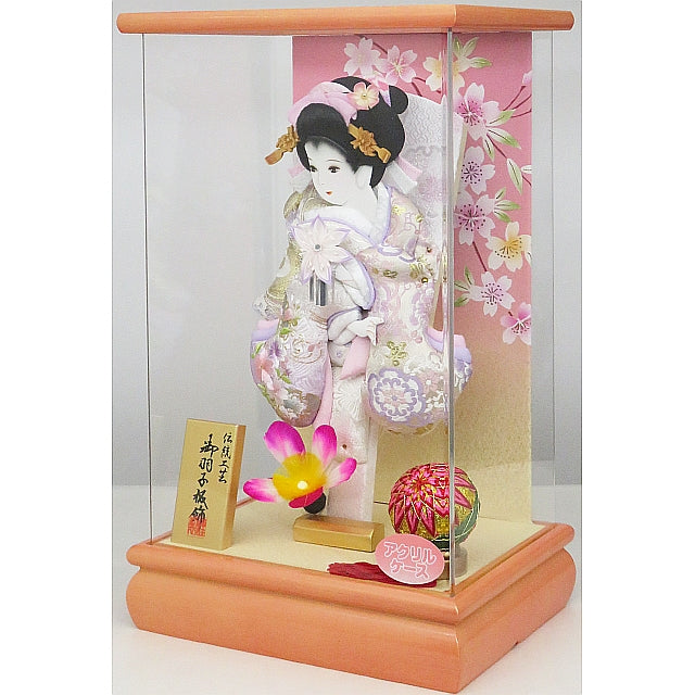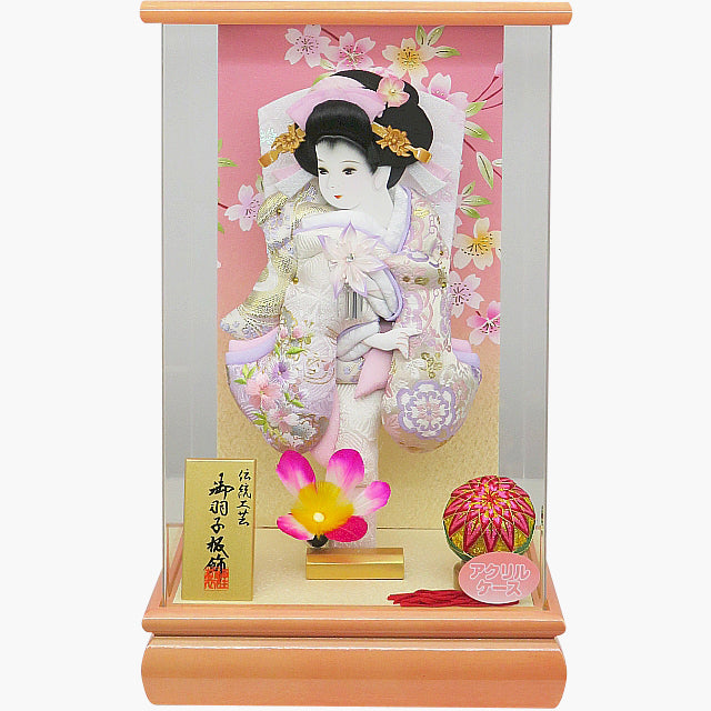 透明感ある色彩で合わせた上品で優しい表情の振袖羽子板飾りです