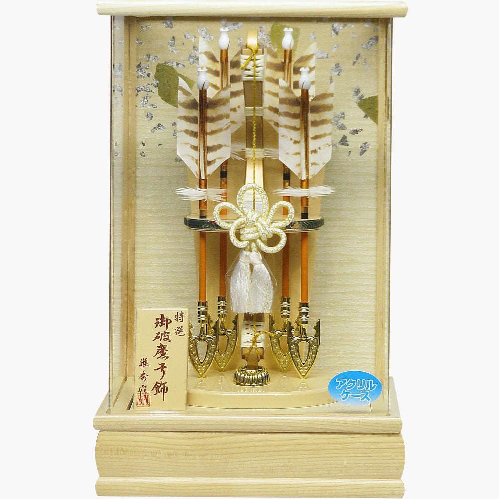 明るく上品な色合いのコンパクトな破魔弓飾りです