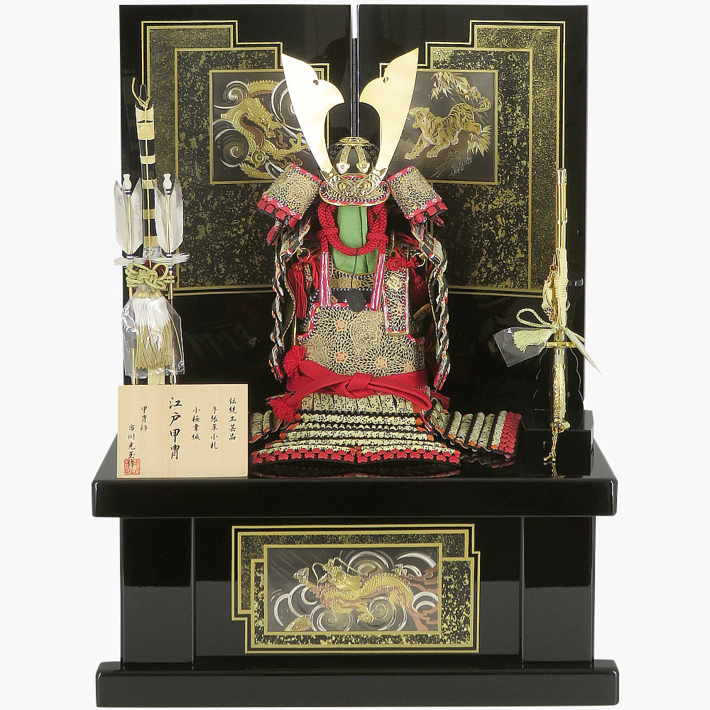 【商品名】市川光玉 10号 奉納楯無之鎧 二曲龍虎彫金収納飾