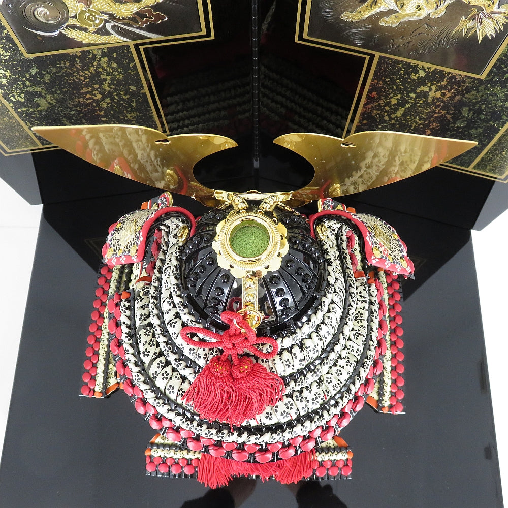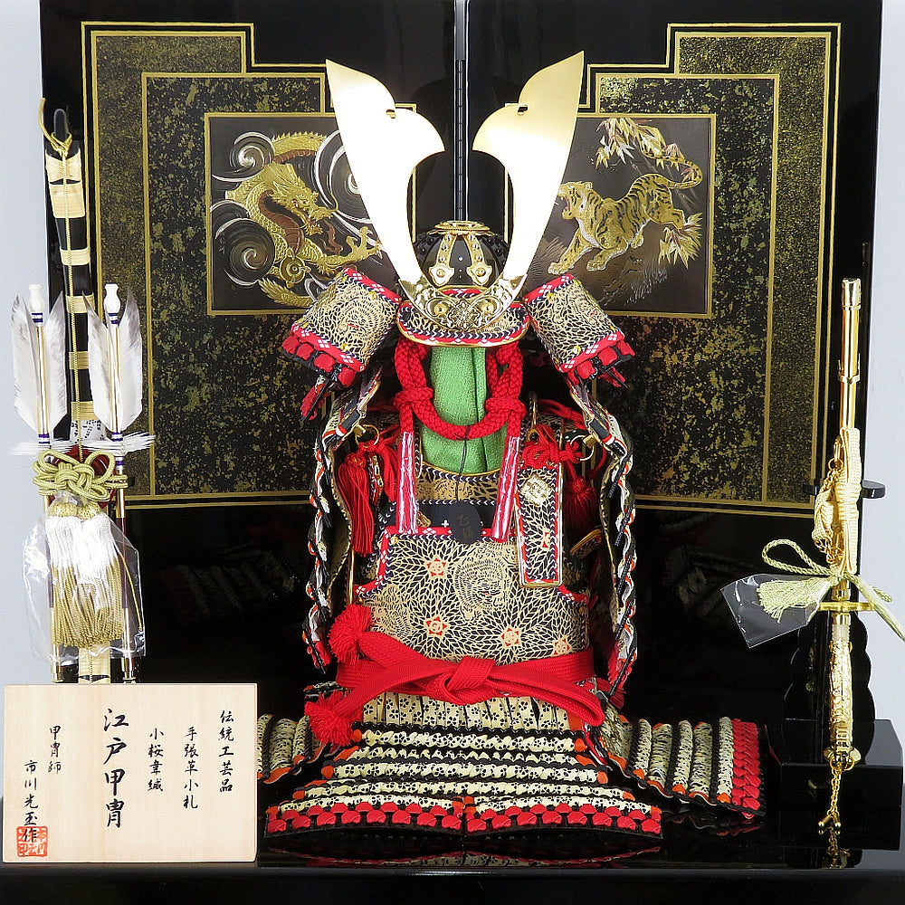 市川光玉 10号 奉納楯無之鎧 二曲龍虎彫金収納飾