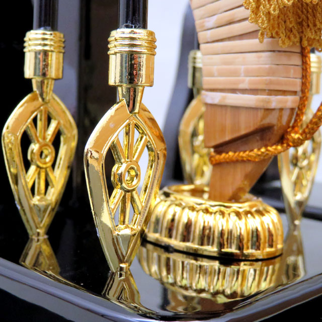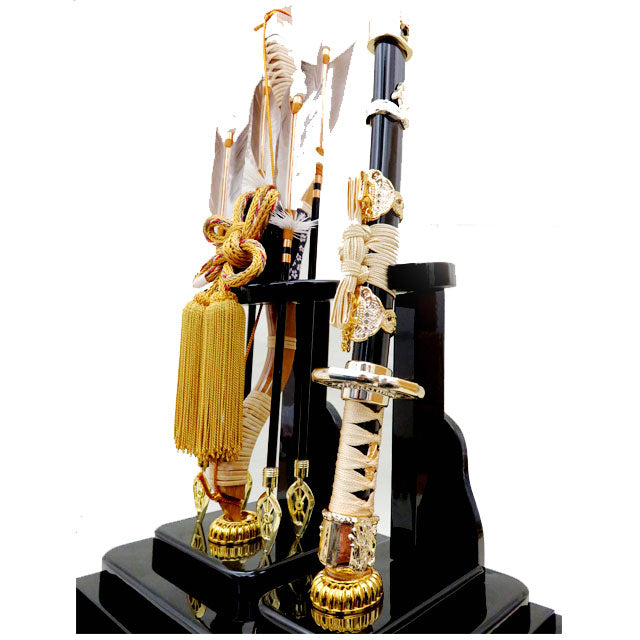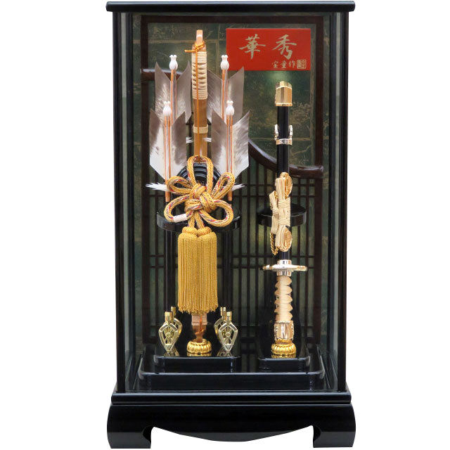 上品で雰囲気のある格子をあしらった存在感のある破魔弓飾りです