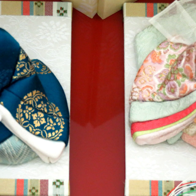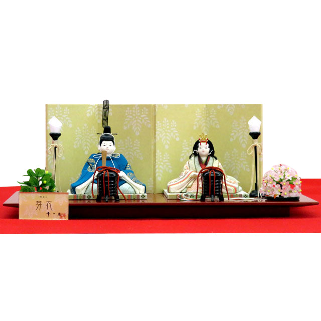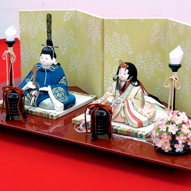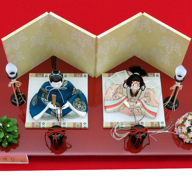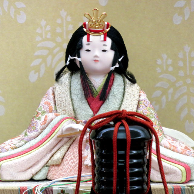 ずっと見つめていたくなる可愛らしい目入りタイプの木目込親王飾です