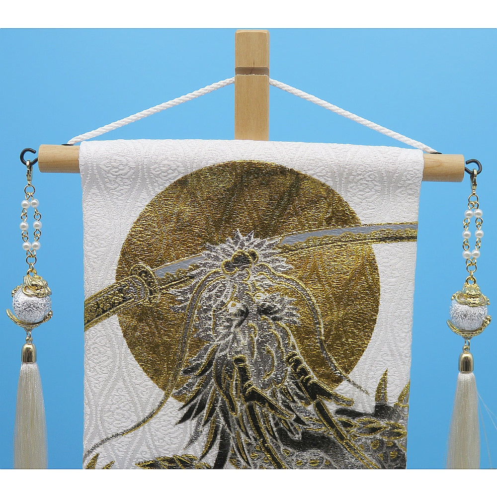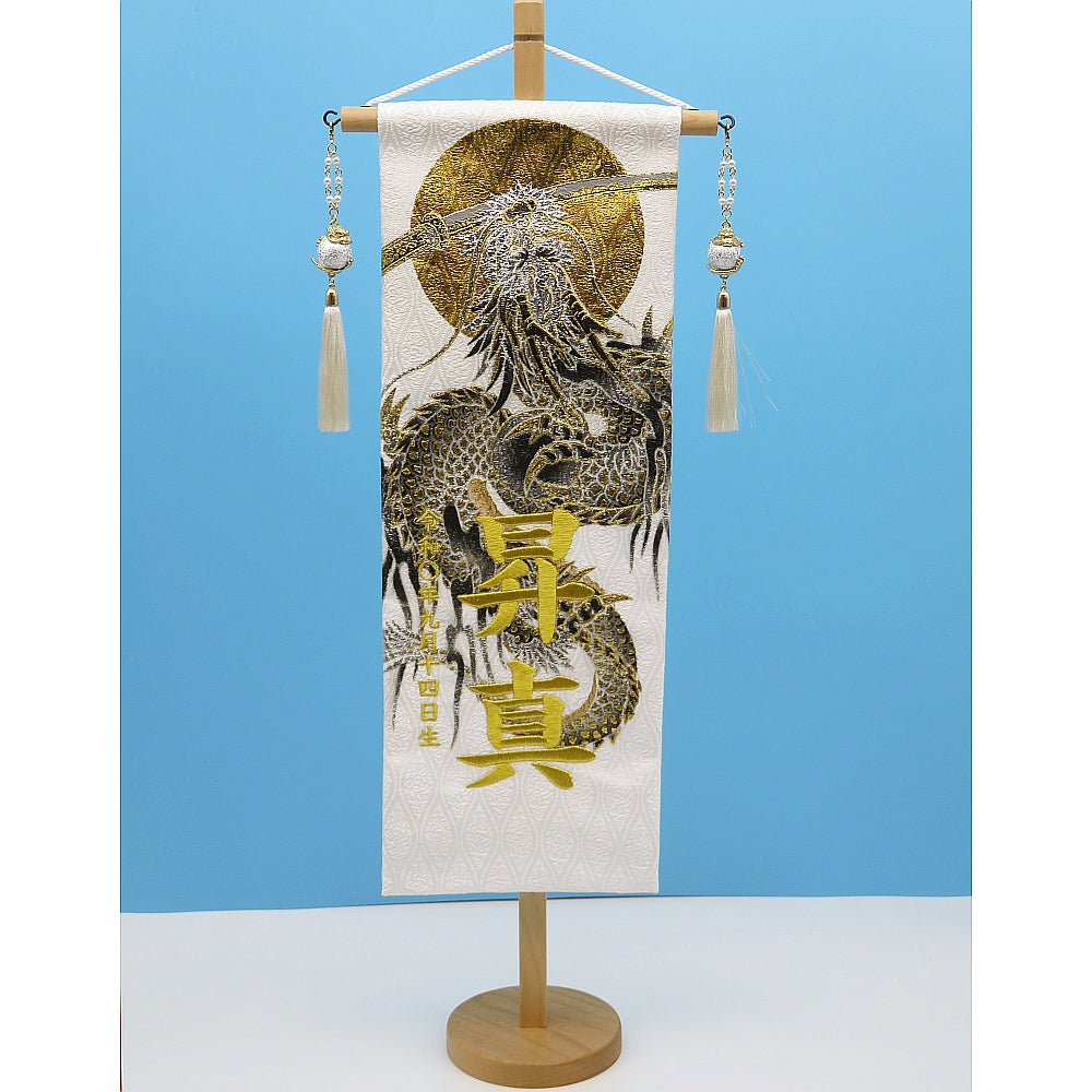 【商品名】名前旗 上金彩 月に刀龍 白 特中