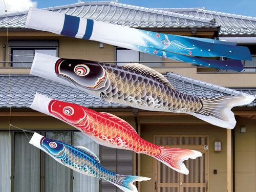 【商品サイズ】吹流し・黒鯉3.0m、赤鯉2.0m、青鯉1.5m、緑鯉1.2m、紫鯉0.9m、ポール6.0m