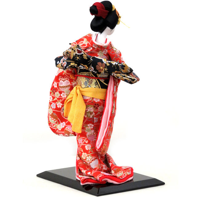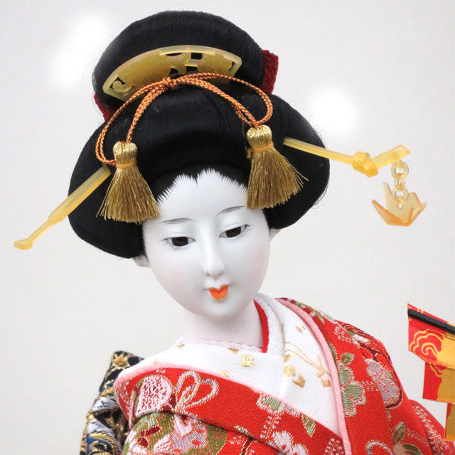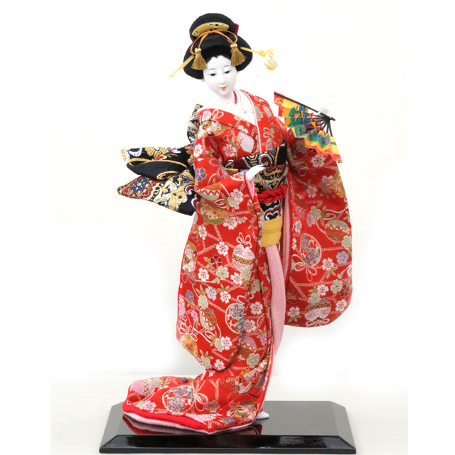 華やかな金襴衣裳の扇を持ち舞う姿が美しい日本人形です