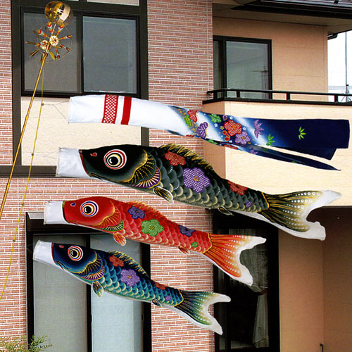 【商品サイズ】吹流し・黒鯉2.0m、赤鯉1.5m、青鯉1.2m、ポール3.7m