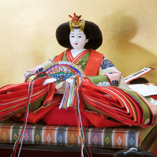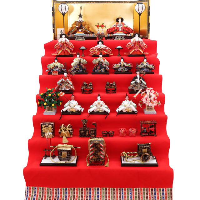 【商品名】東宮雛 十五人揃七段 緋毛氈飾り