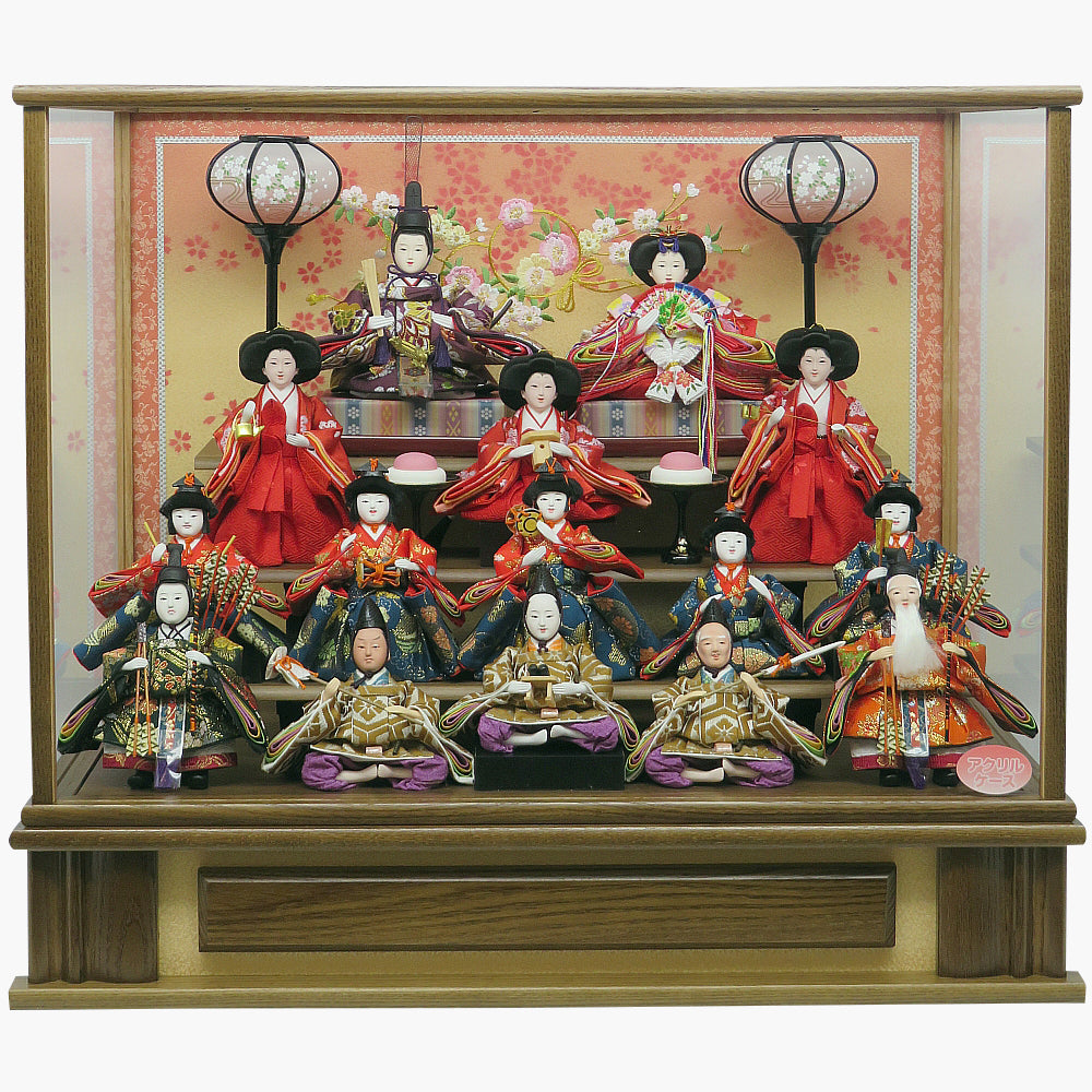 【商品名】小芥子親王柳15人飾 古代塗タモ アクリルケース
