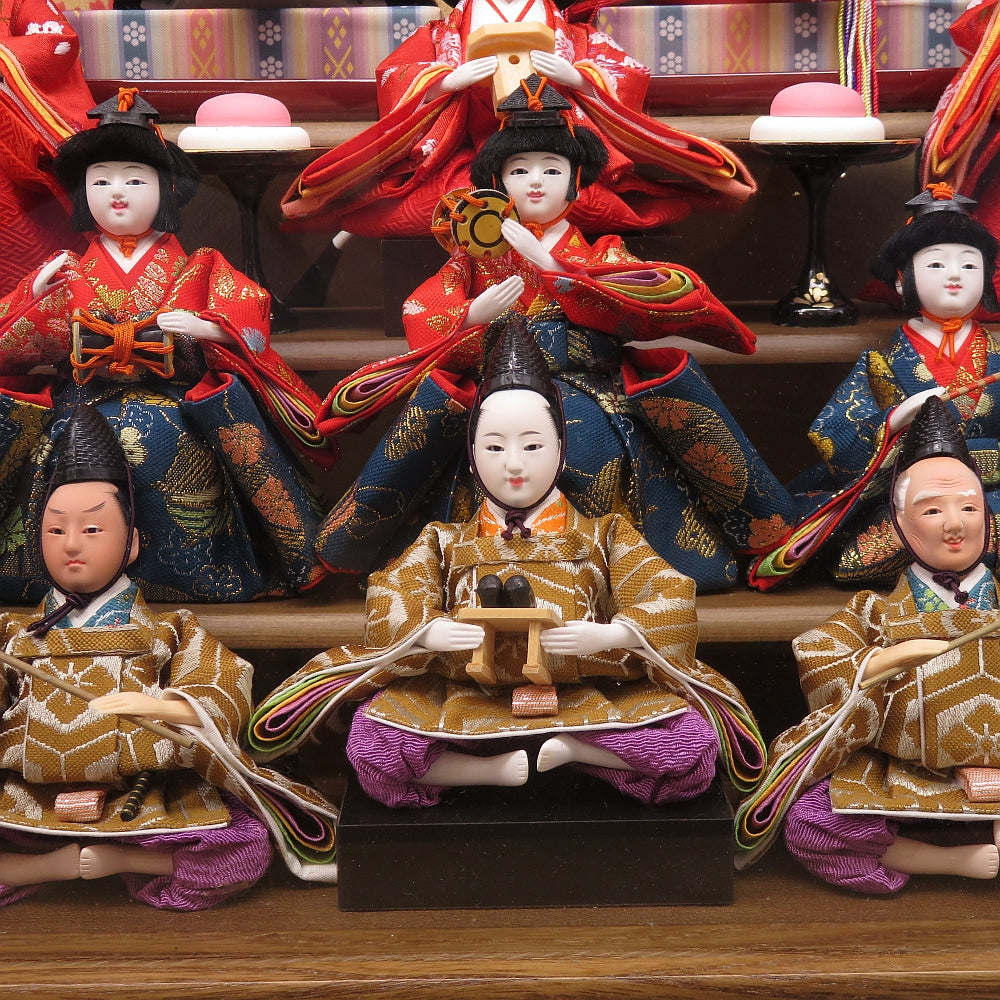 存在感あるにぎやかな雛人形十五人飾りケース入りです