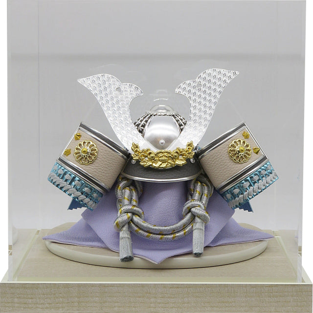 透明感あるアクリルケースに入ったコンパクトサイズで凛々しくお飾りいただける兜飾りです