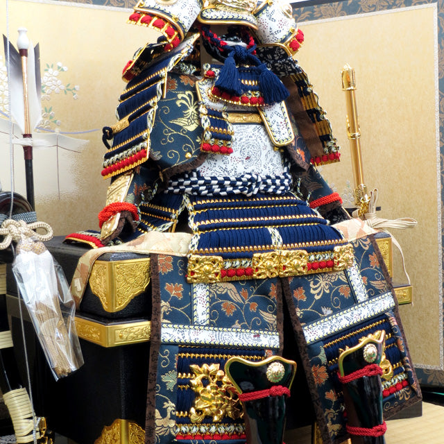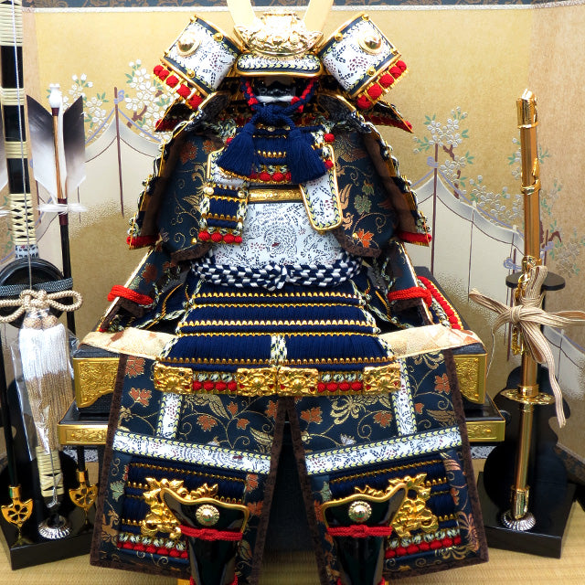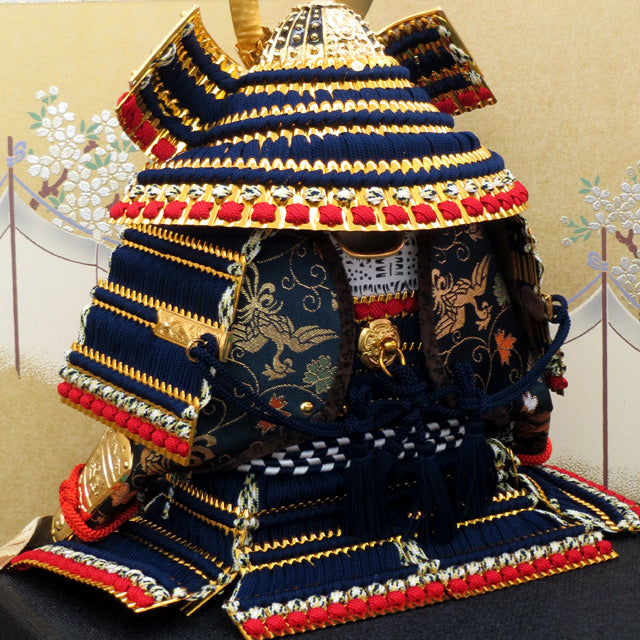 極細小札紺糸縅の丁寧なつくりが綺麗な鎧飾りです