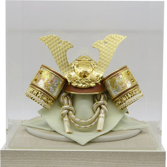 透明感あるアクリルケースに入ったコンパクトサイズで凛々しくお飾りいただける兜飾りです