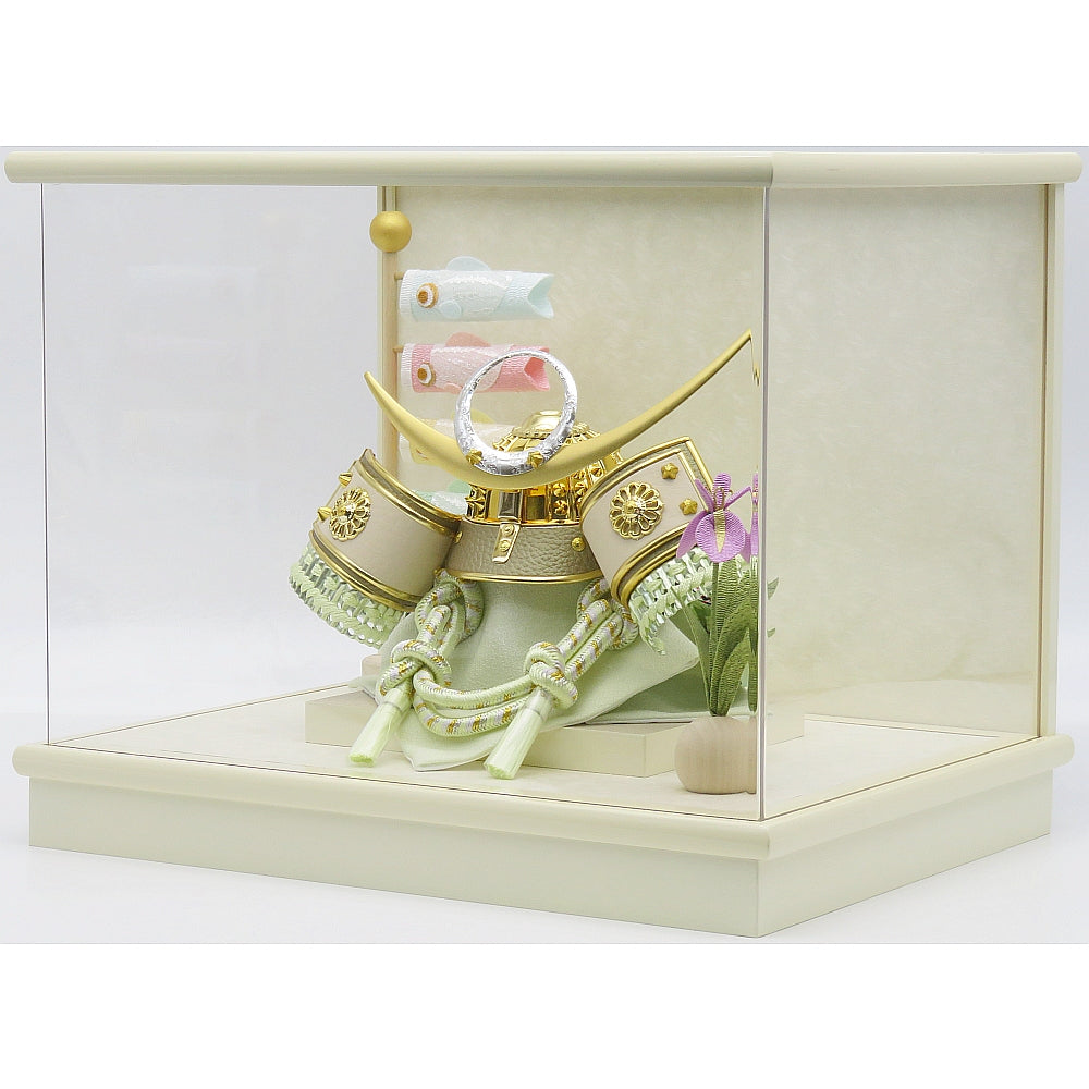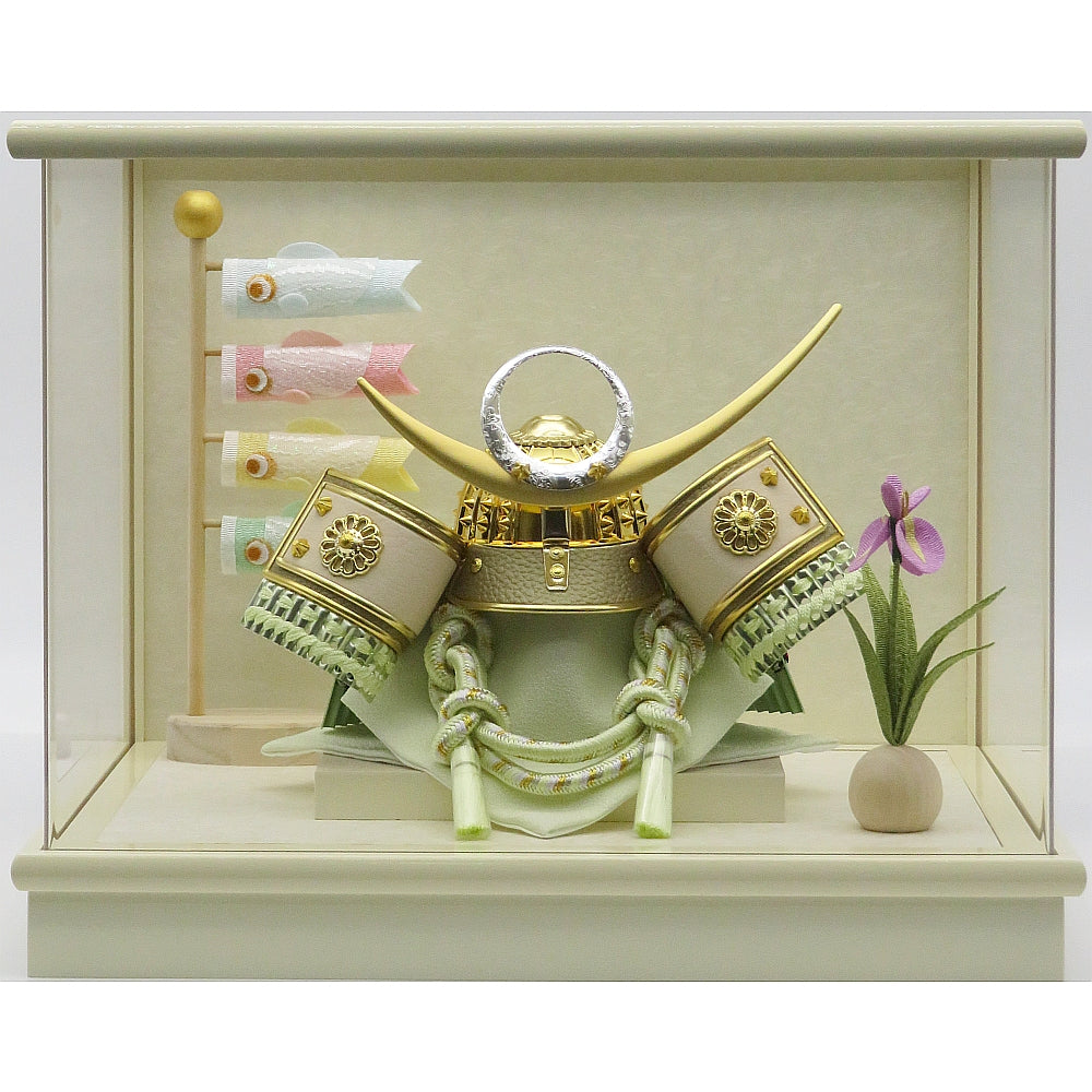 春らしくパステルカラーで仕立てた凛々しい兜飾りです
