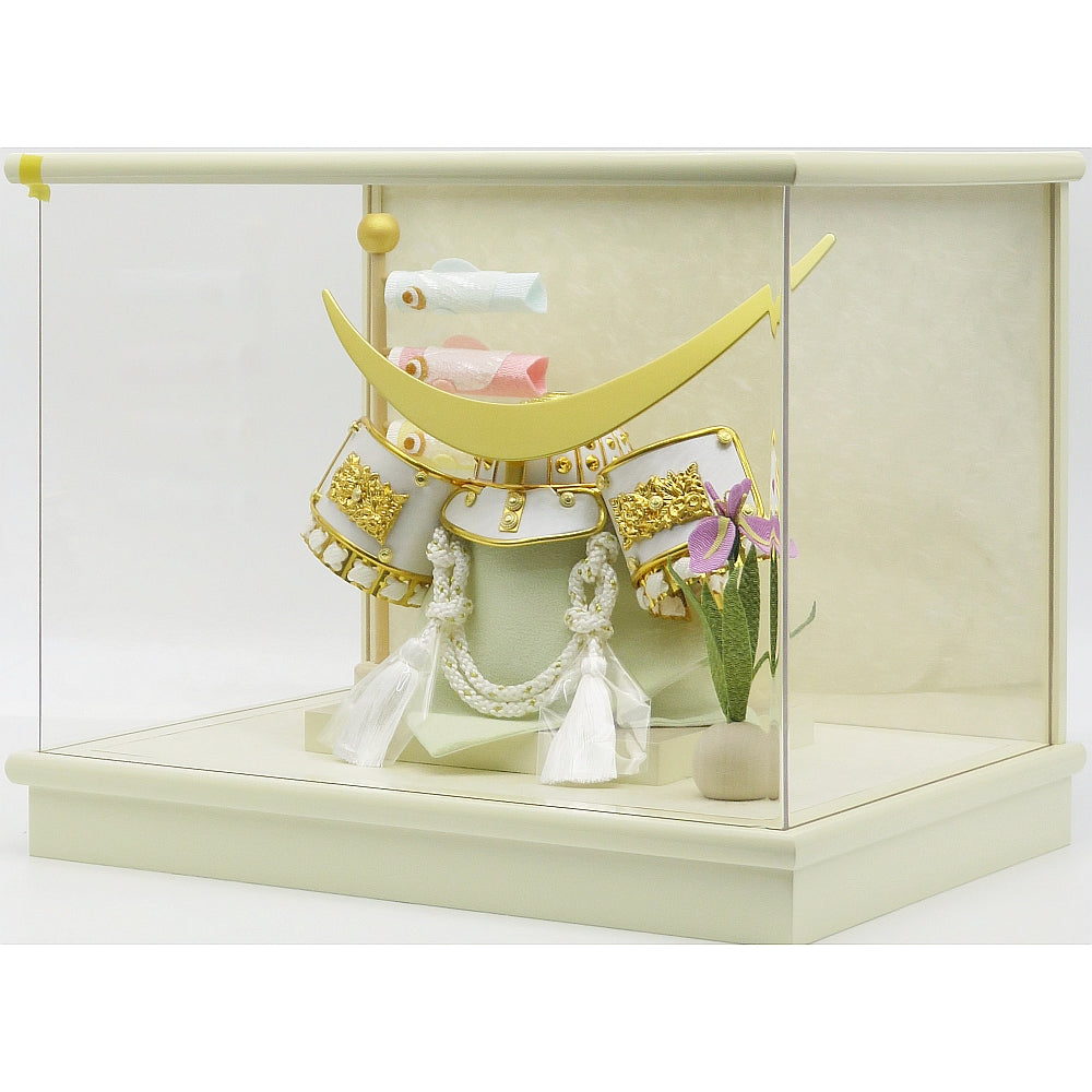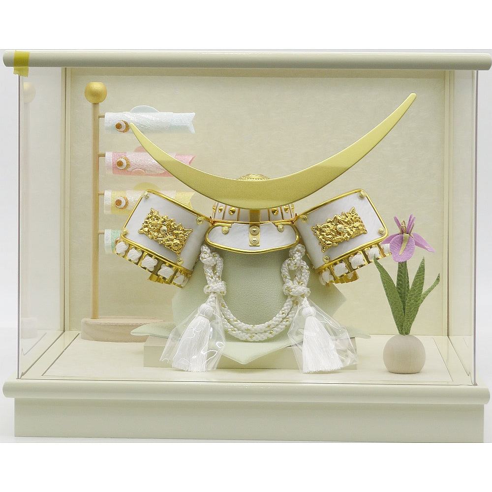 春らしくパステルカラーで仕立てた凛々しい兜飾りです