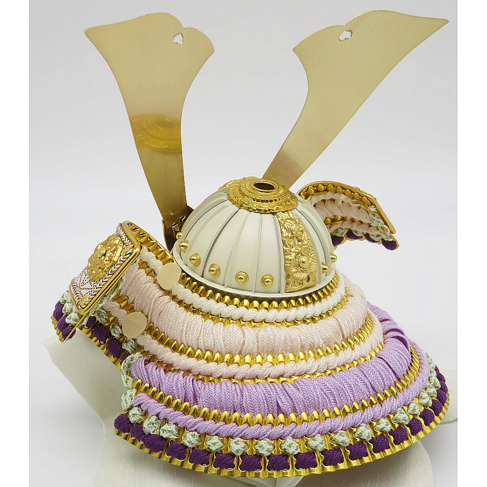 金小札に上品な紫色の糸を綺麗なグラデーションで威した繊細な造りの兜飾りです