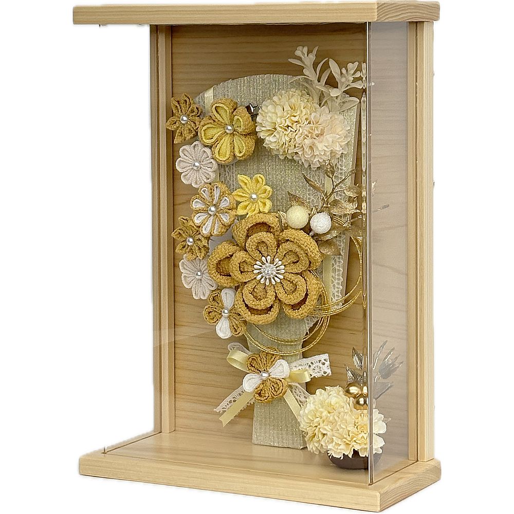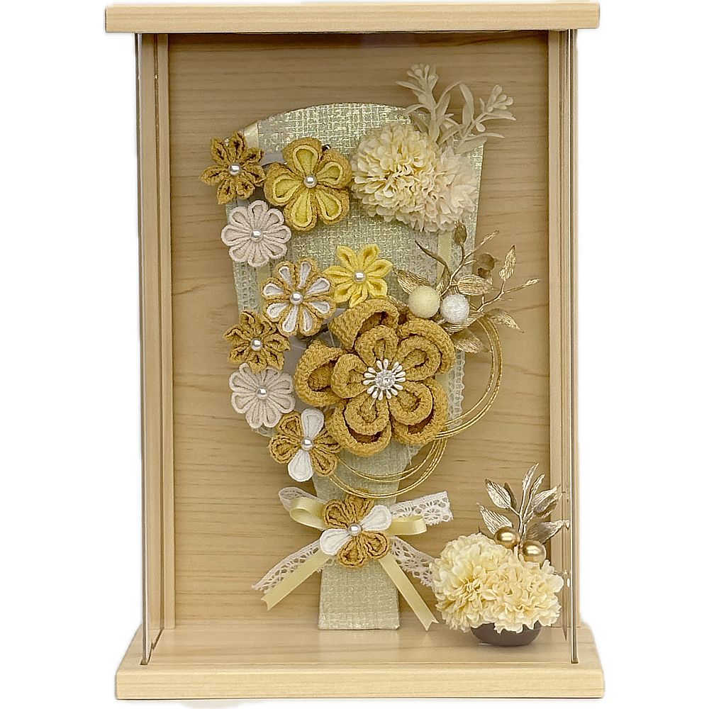 奥行薄型でコンパクトにお飾りいただける可愛らしく華やかな彩のアクリル額入り羽子板飾りです