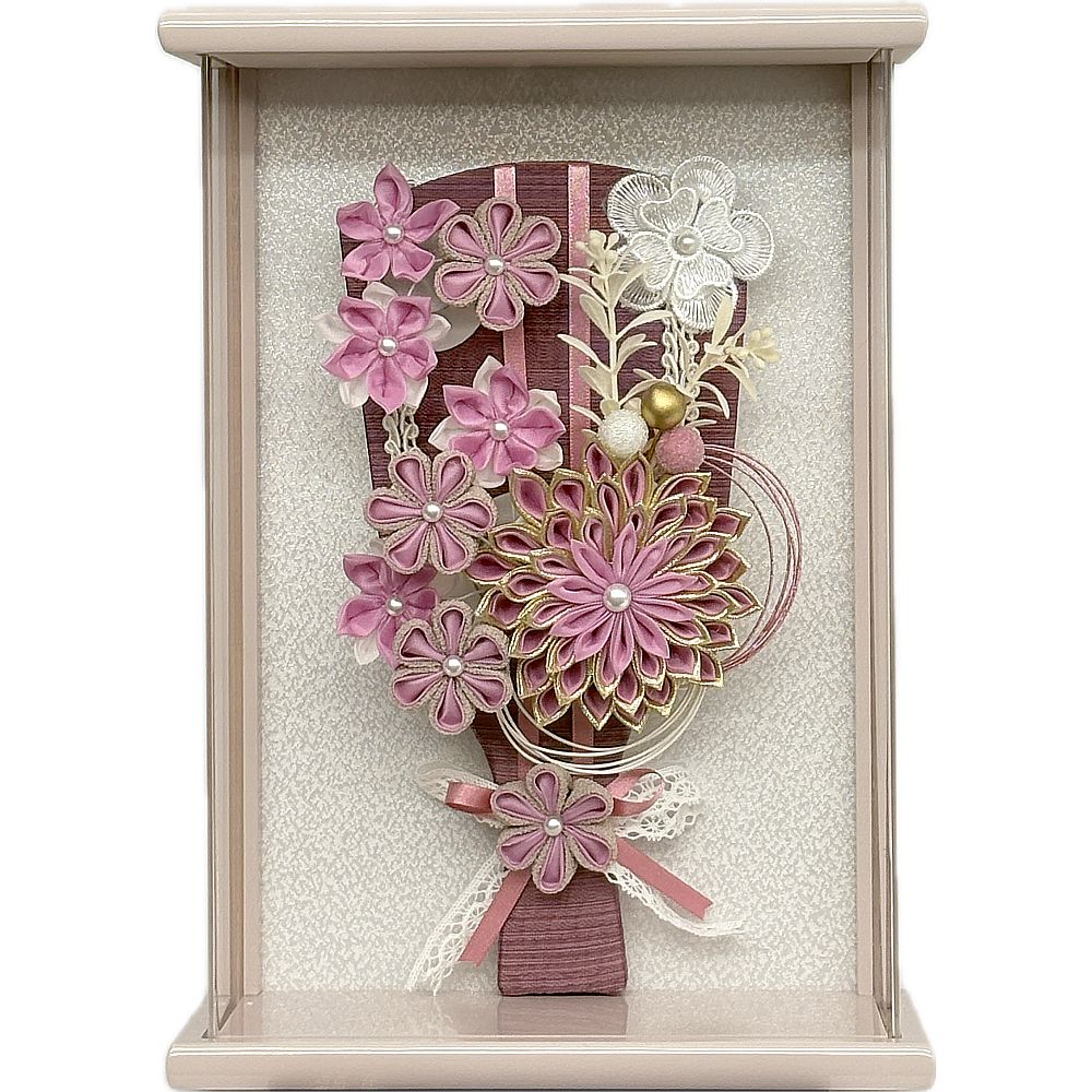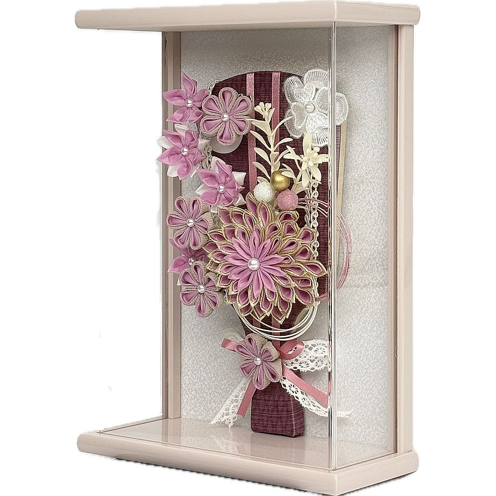 奥行薄型でコンパクトにお飾りいただける可愛らしく華やかな彩のアクリル額入り羽子板飾りです