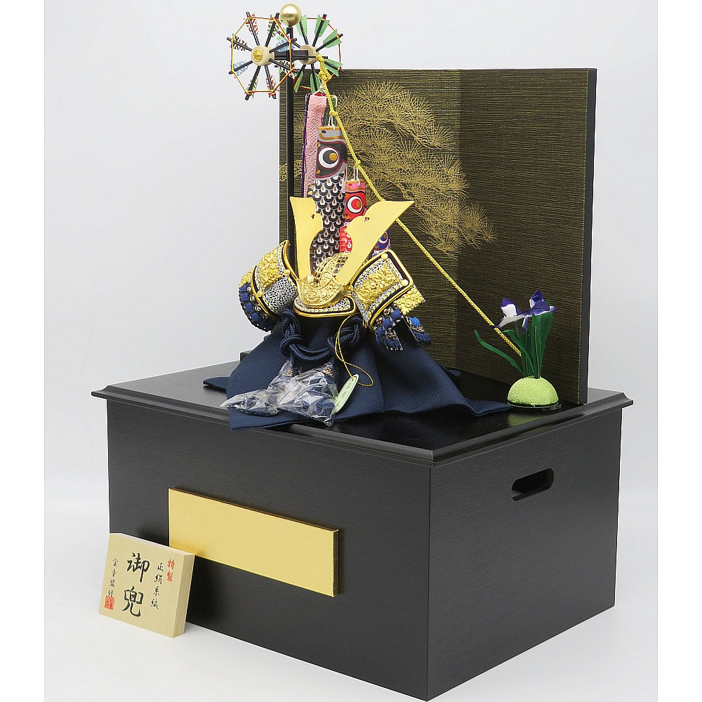 正絹青糸裾濃縅の綺麗で勇ましい兜収納飾りです