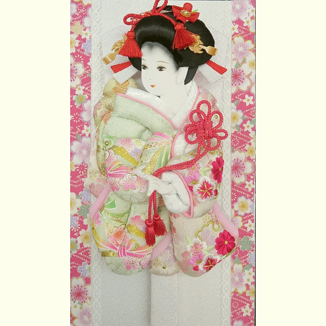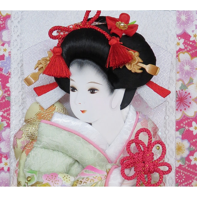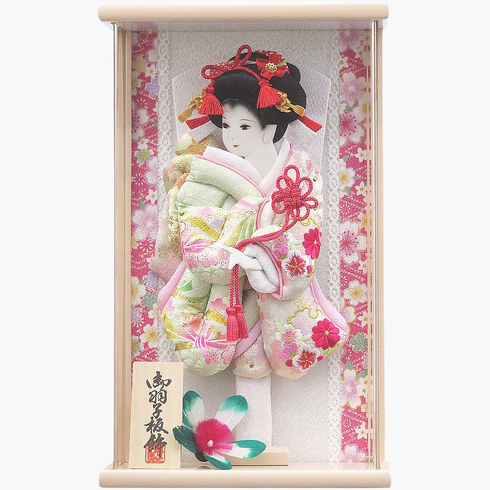 奥行薄型でコンパクトにお飾りいただける可愛らしく華やかな額入り羽子板飾りです