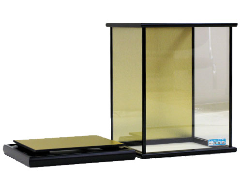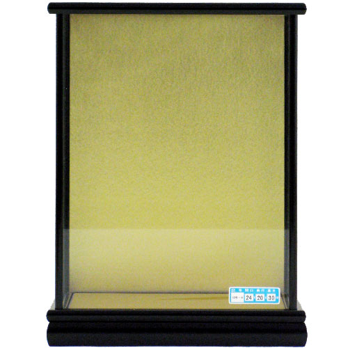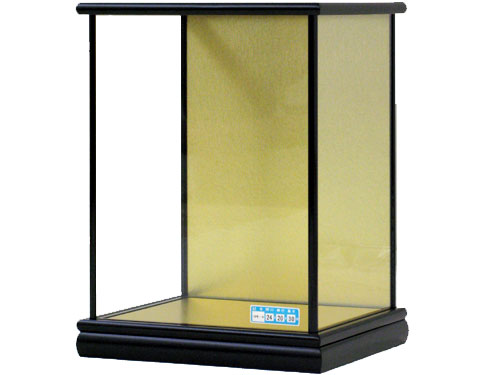 しっかりとしたつくりの木製、金バックのカブセガラスケースです