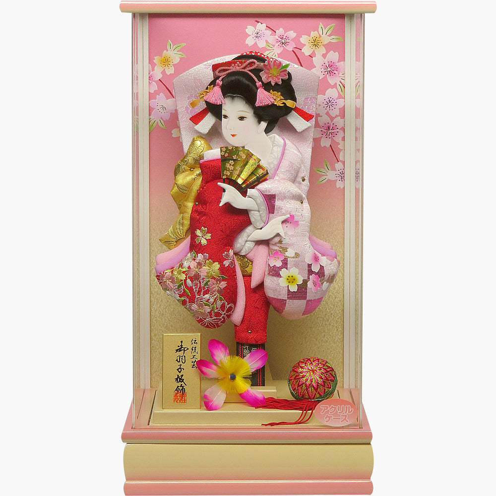 優しい彩のアクリルケースで前柱のなく羽子板が引き立ちます