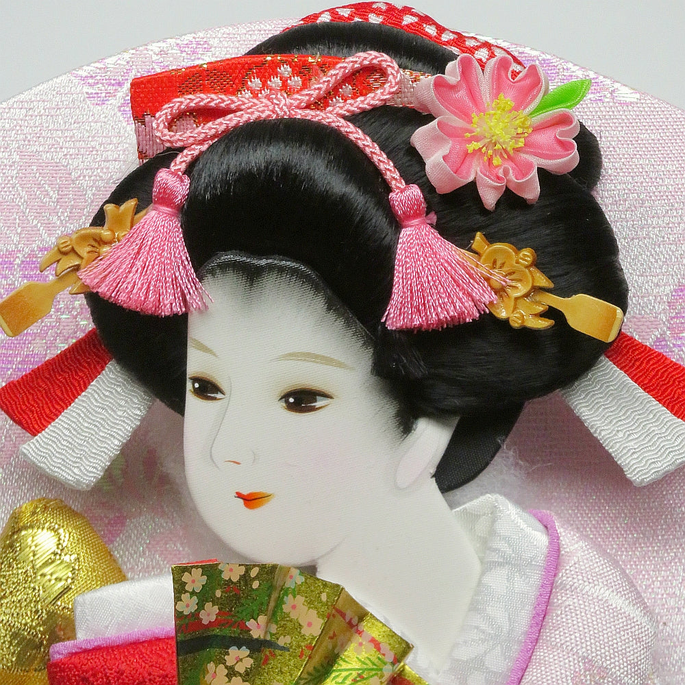 可愛らしく華やかな金彩と刺繍を施した振袖羽子板飾りです