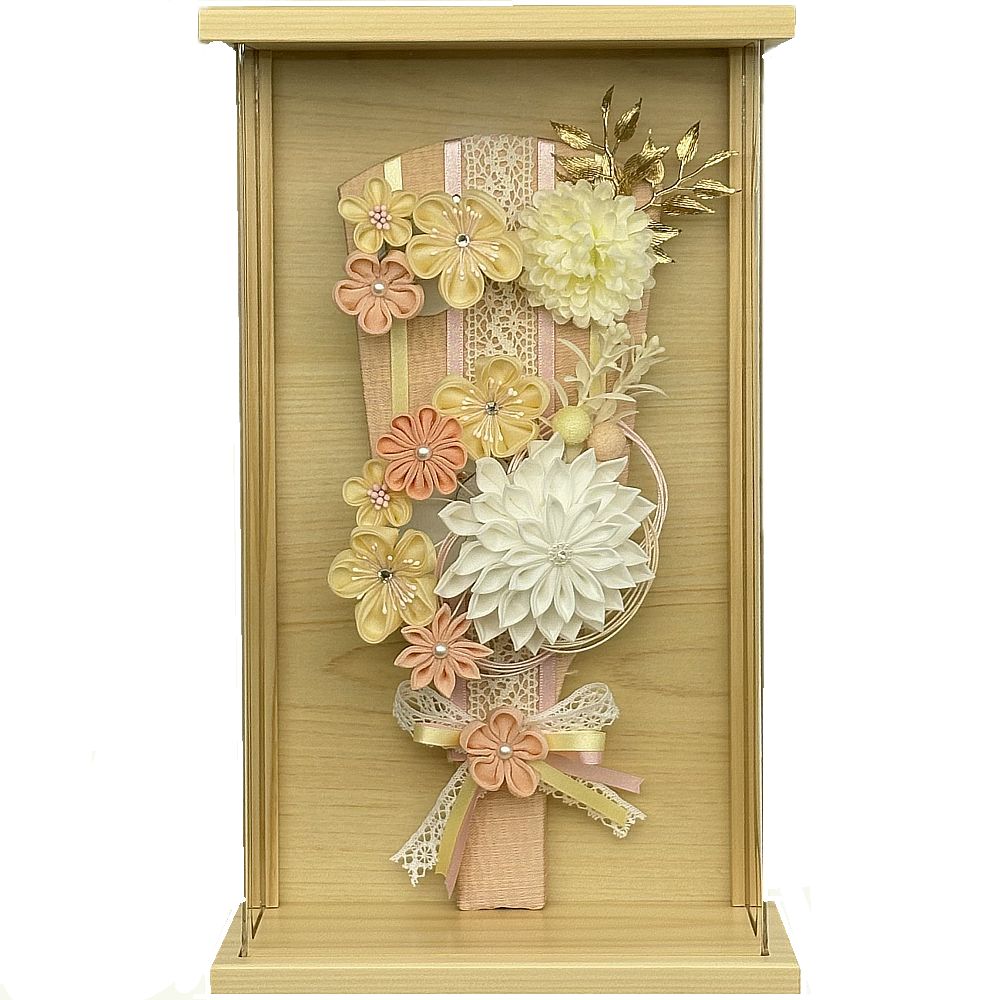 奥行薄型でコンパクトにお飾りいただける可愛らしく華やかな桧ベースのアクリル額入り羽子板飾りです