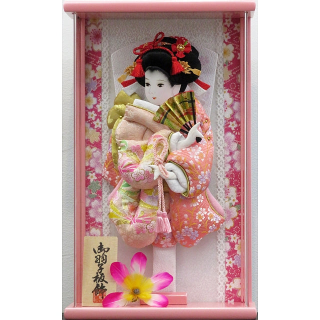 奥行薄型でコンパクトにお飾りいただける可愛らしく華やかなひのき額入り羽子板飾りです