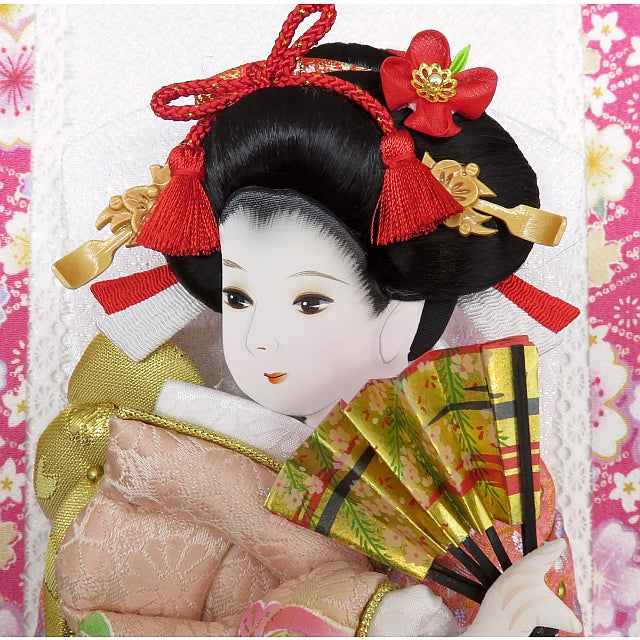 上品なお顔と綺麗な桜色の華やかな金彩が優しい羽子板です