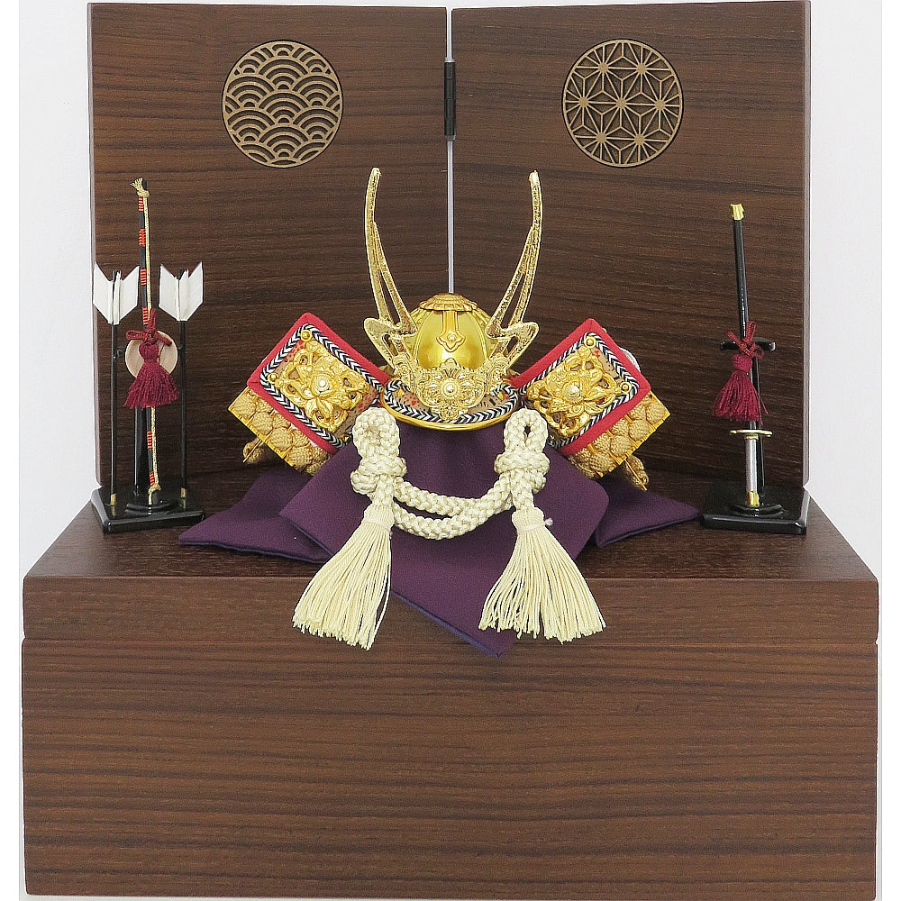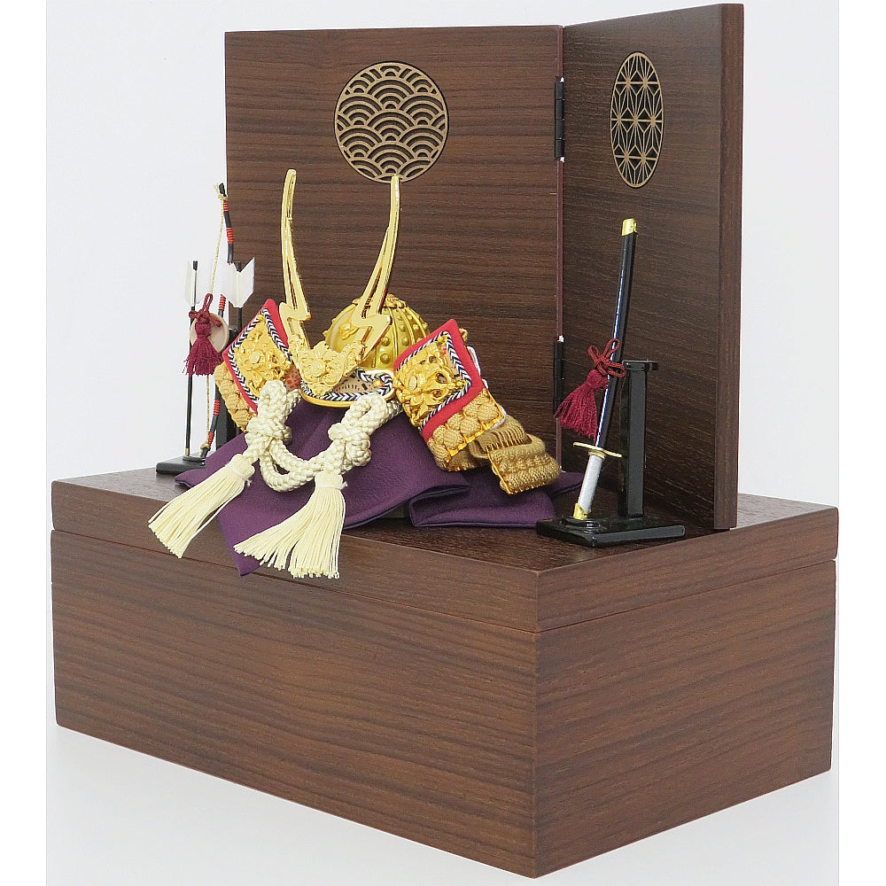 落ち着いた雰囲気のコンパクトな収納飾り台屏風が兜飾りをを引き立てます