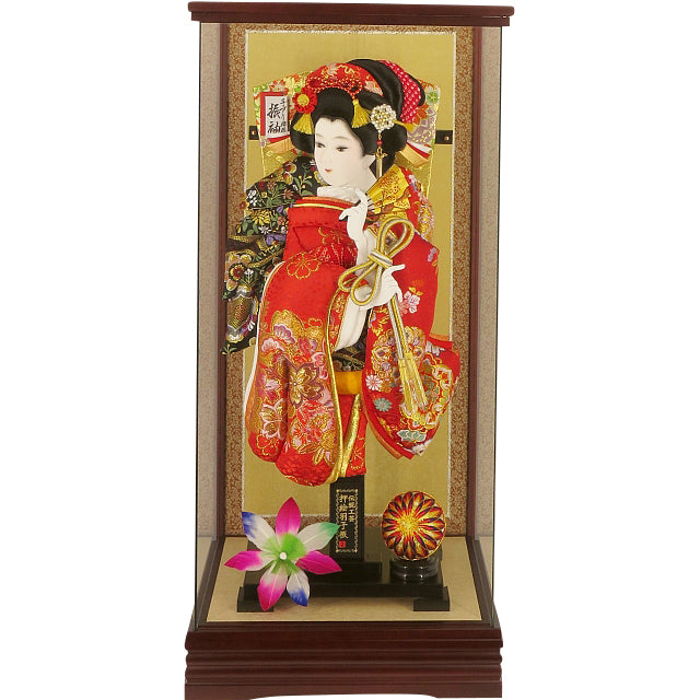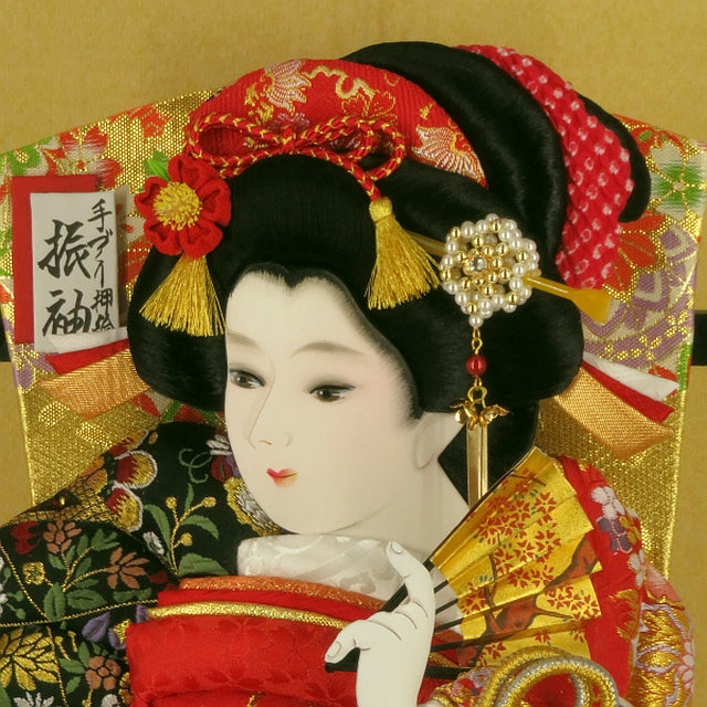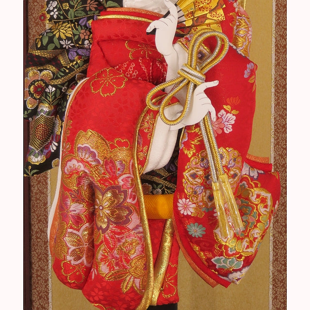 華やかで上品な金襴で仕立てた見ごたえあるたっぷりとした振袖羽子板飾りです