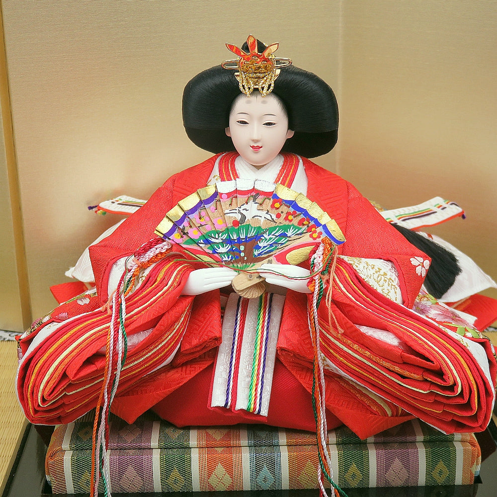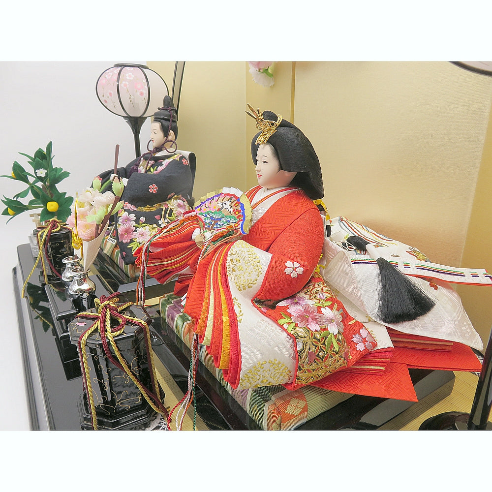 繊細な刺繍衣装が華やかな存在感あるお雛様です