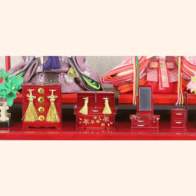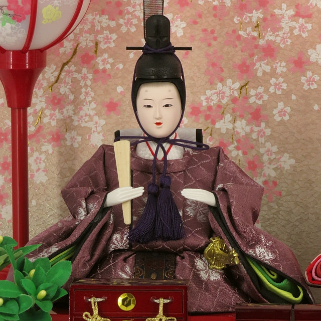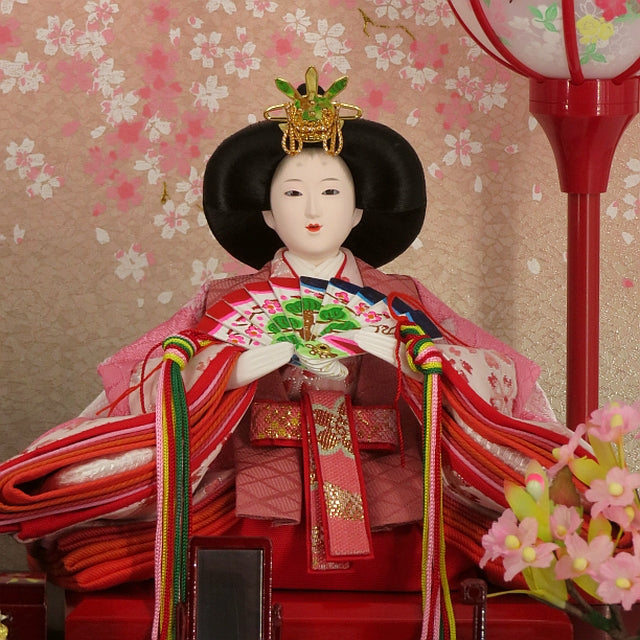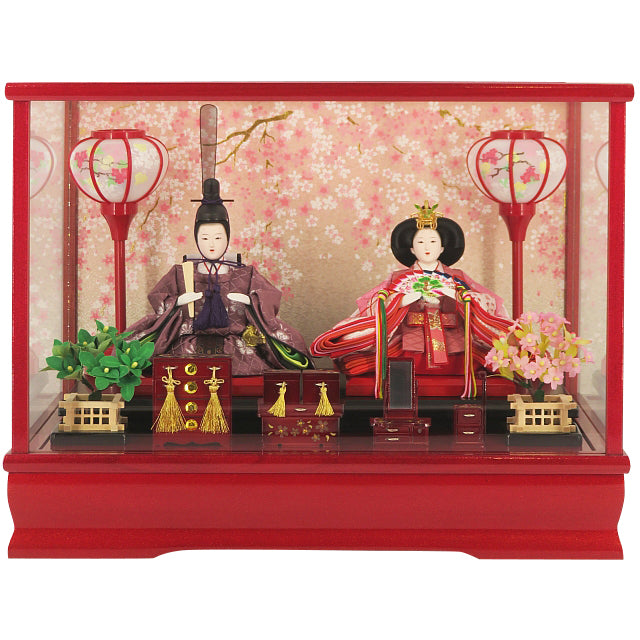 【商品名】光春雛 親王飾 赤 ガラスケース入り