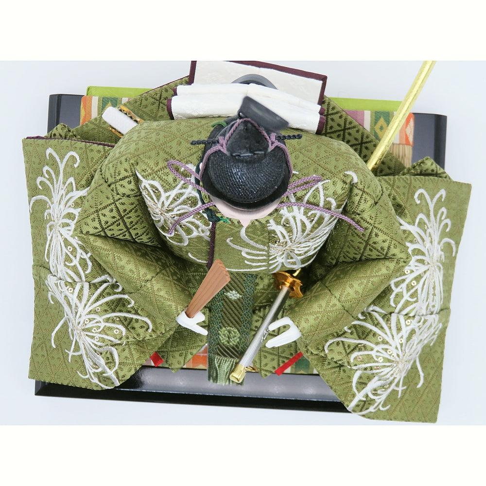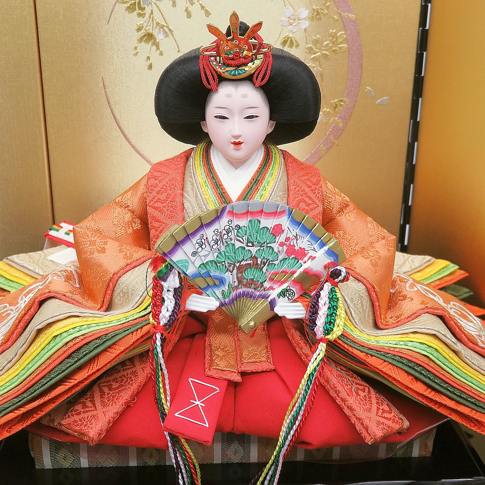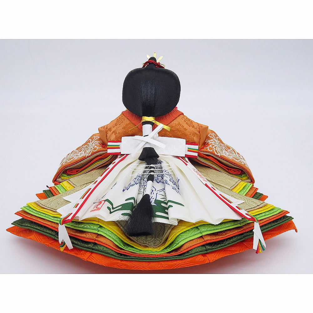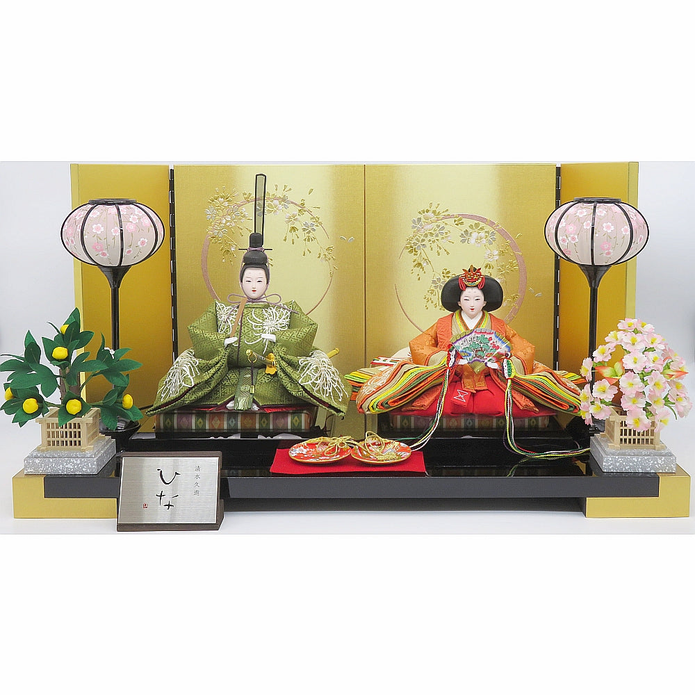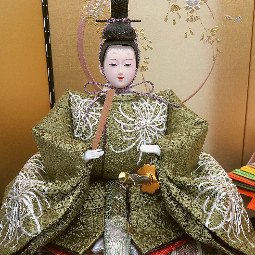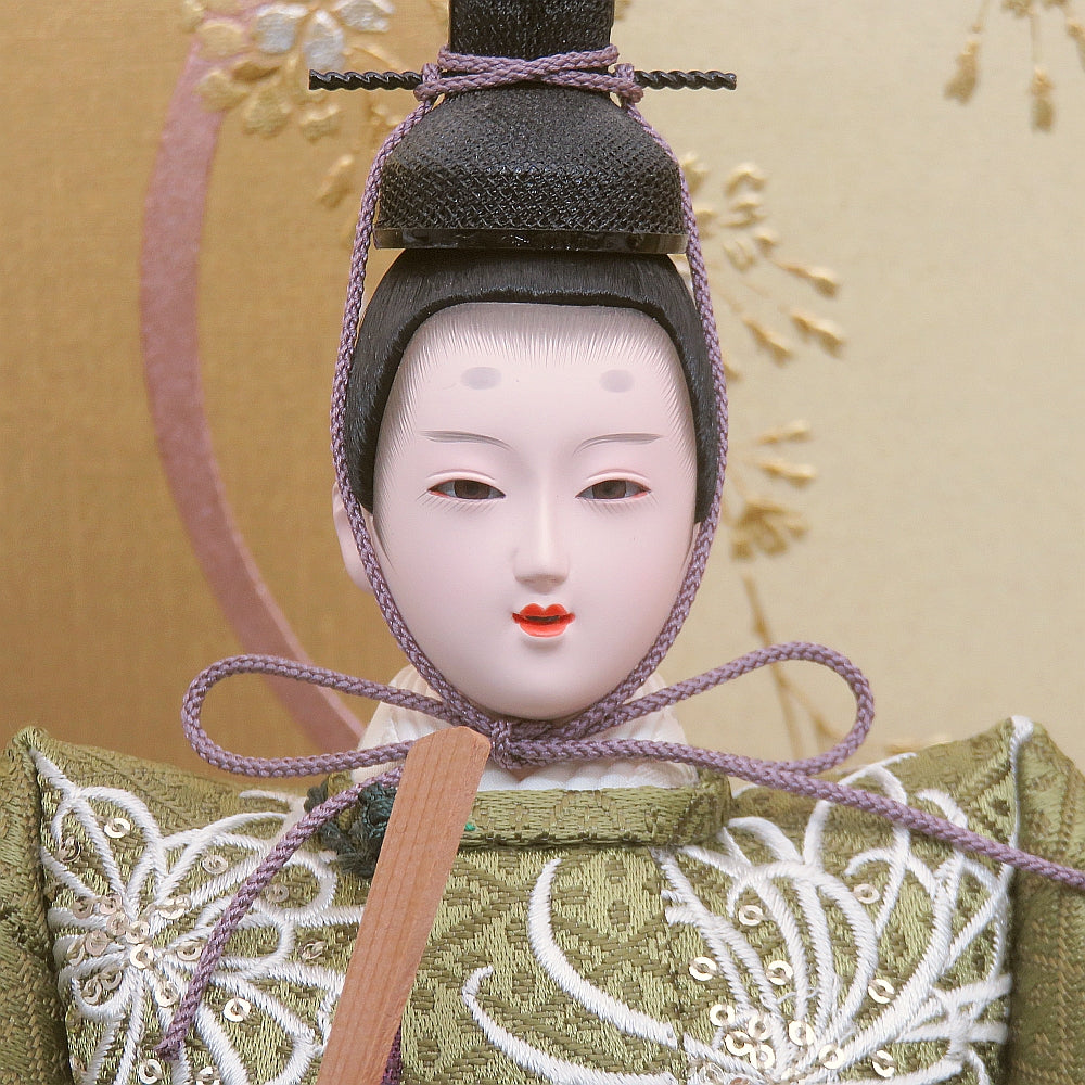 両袖に入った刺繍が綺麗に華やかで雛人形を引き立てます
