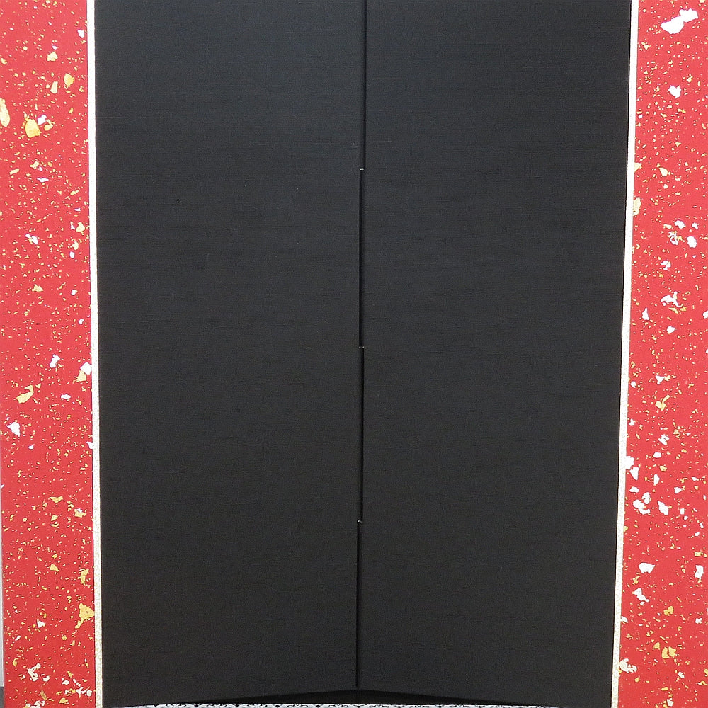 コンパクトサイズの本格派鎧をコントラストが活きる二曲屏風で飾りました