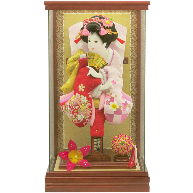 前柱のない上品な厚板ガラスケースとあわせ羽子板を引き立てました