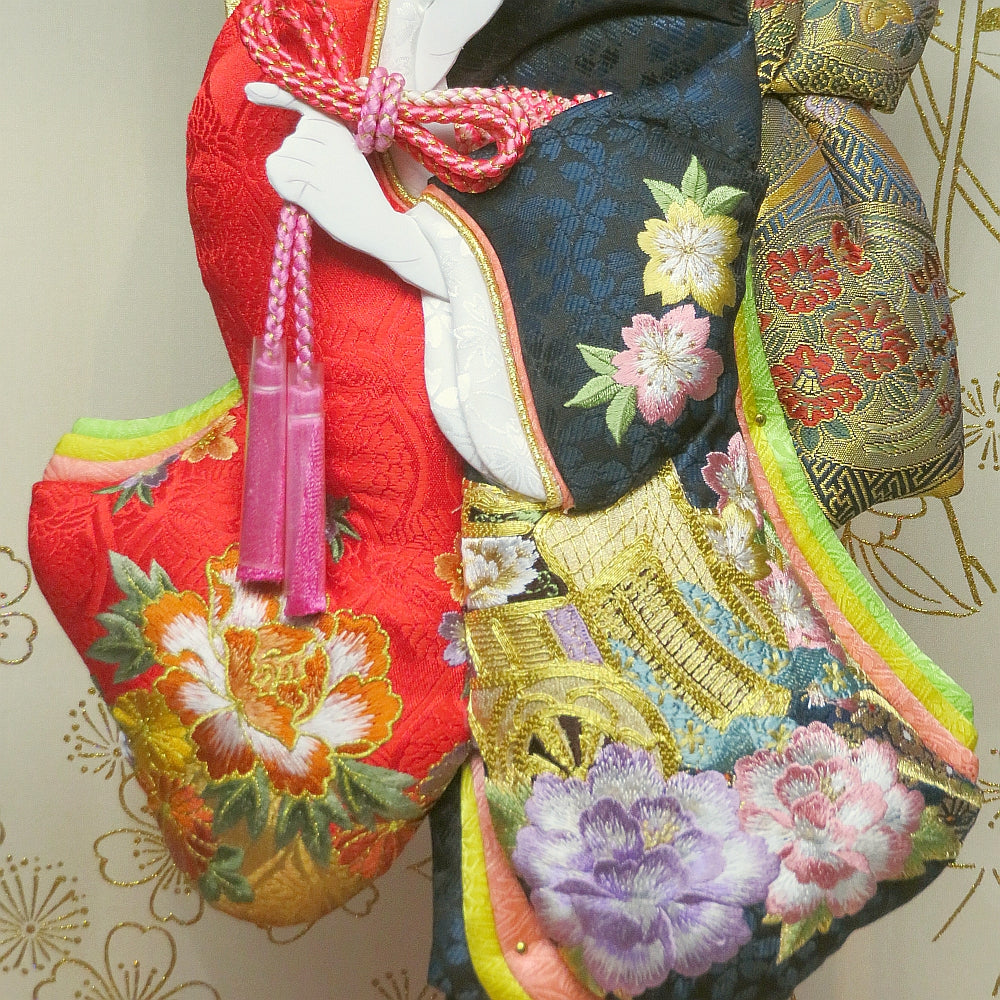 繊細で豪華な金駒刺繍の見ごたえある上品な振袖羽子板飾りです
