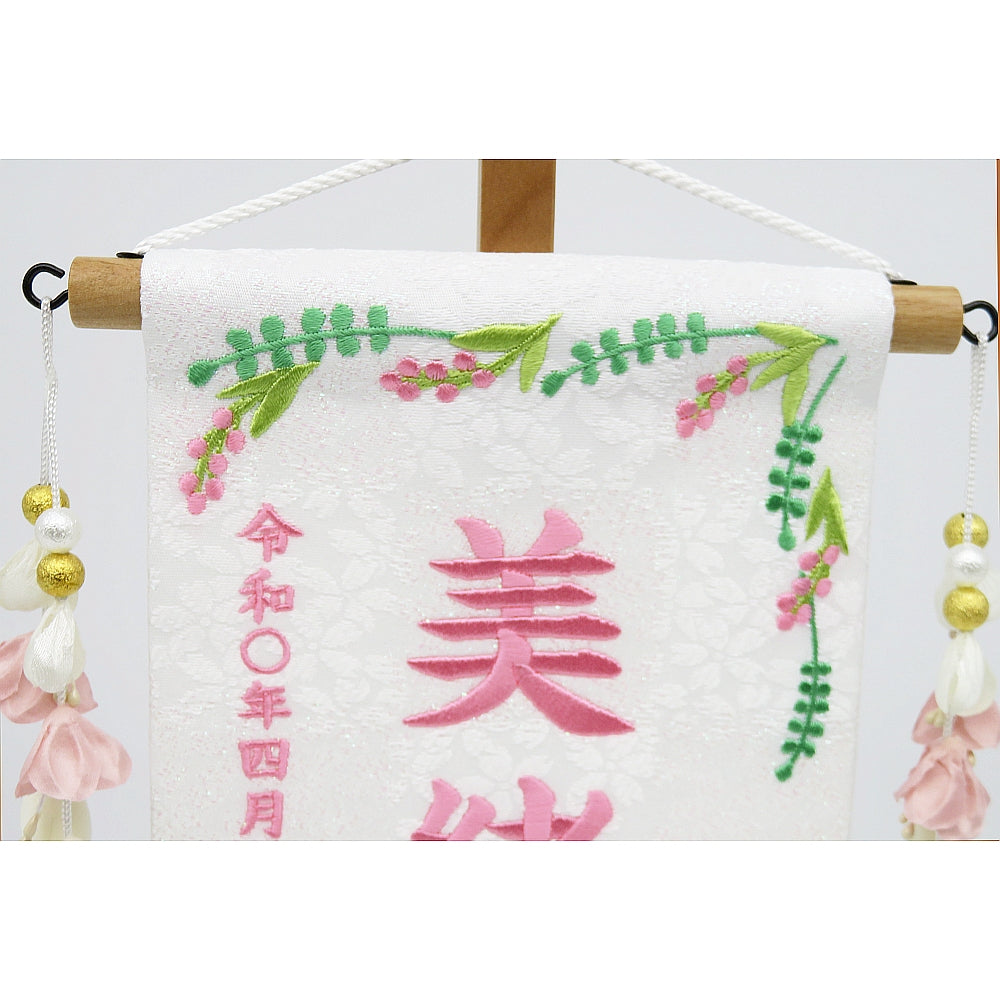 【商品名】名前旗 特織 白色 小 若草にうさぎ 花舞桃