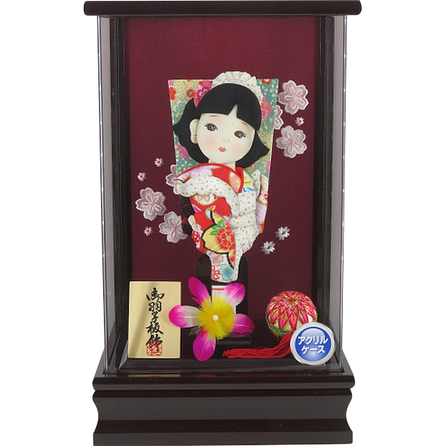 葡萄色の前柱のないアクリルケースで羽子板をすっきりと引き立てます