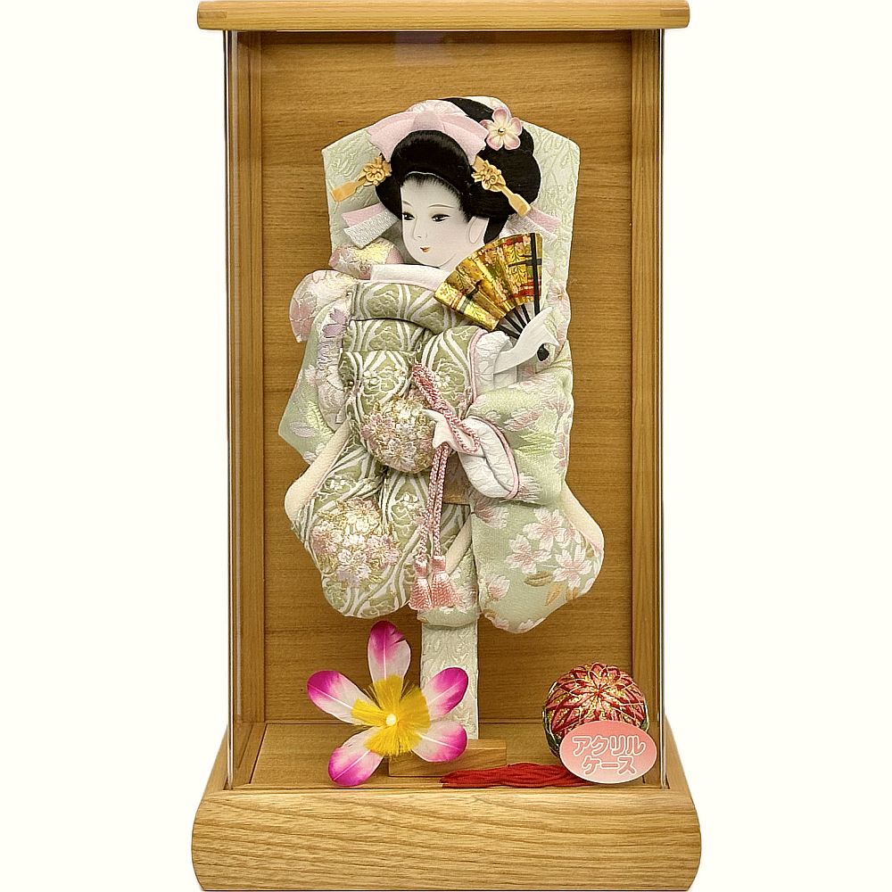 前柱のなくすっきりとした軽いコンパクトなアクリルケースと合せ羽子板を引き立てました