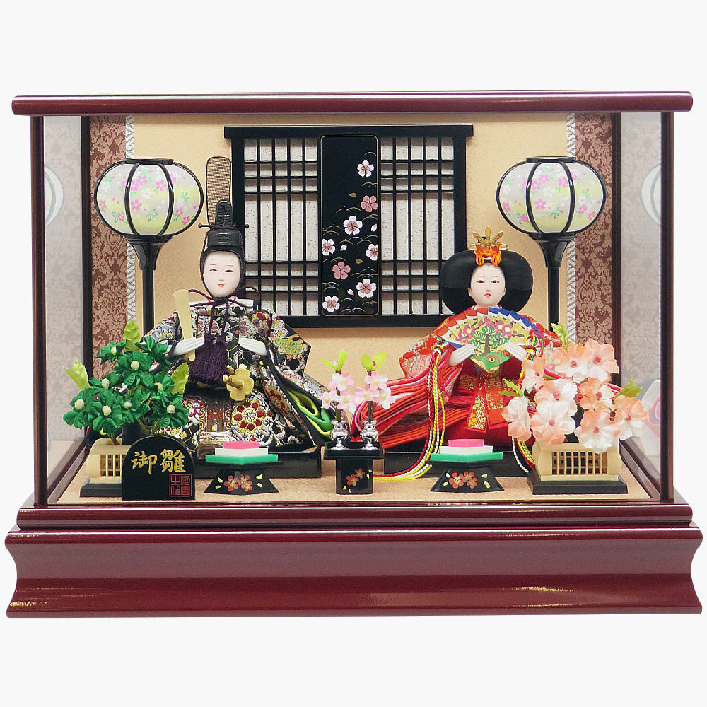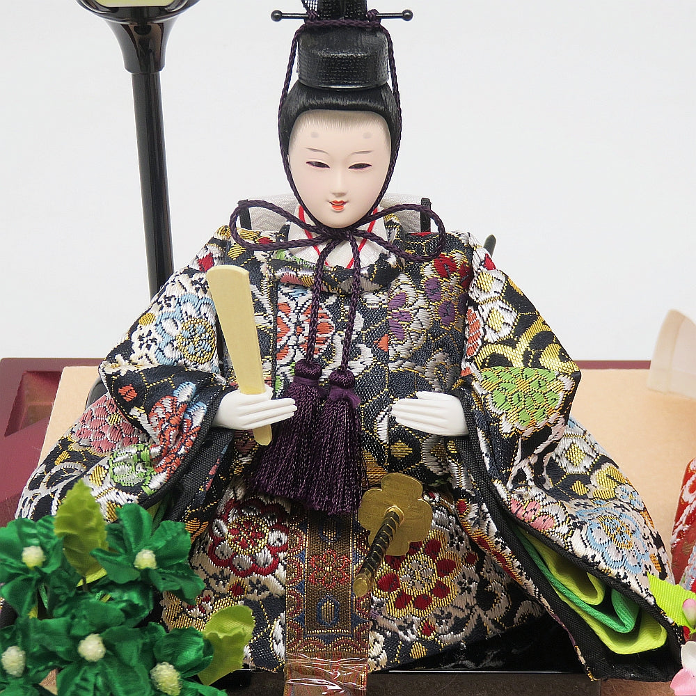 上品な金襴衣装が華やかな優しい表情の雛人形親王飾りです