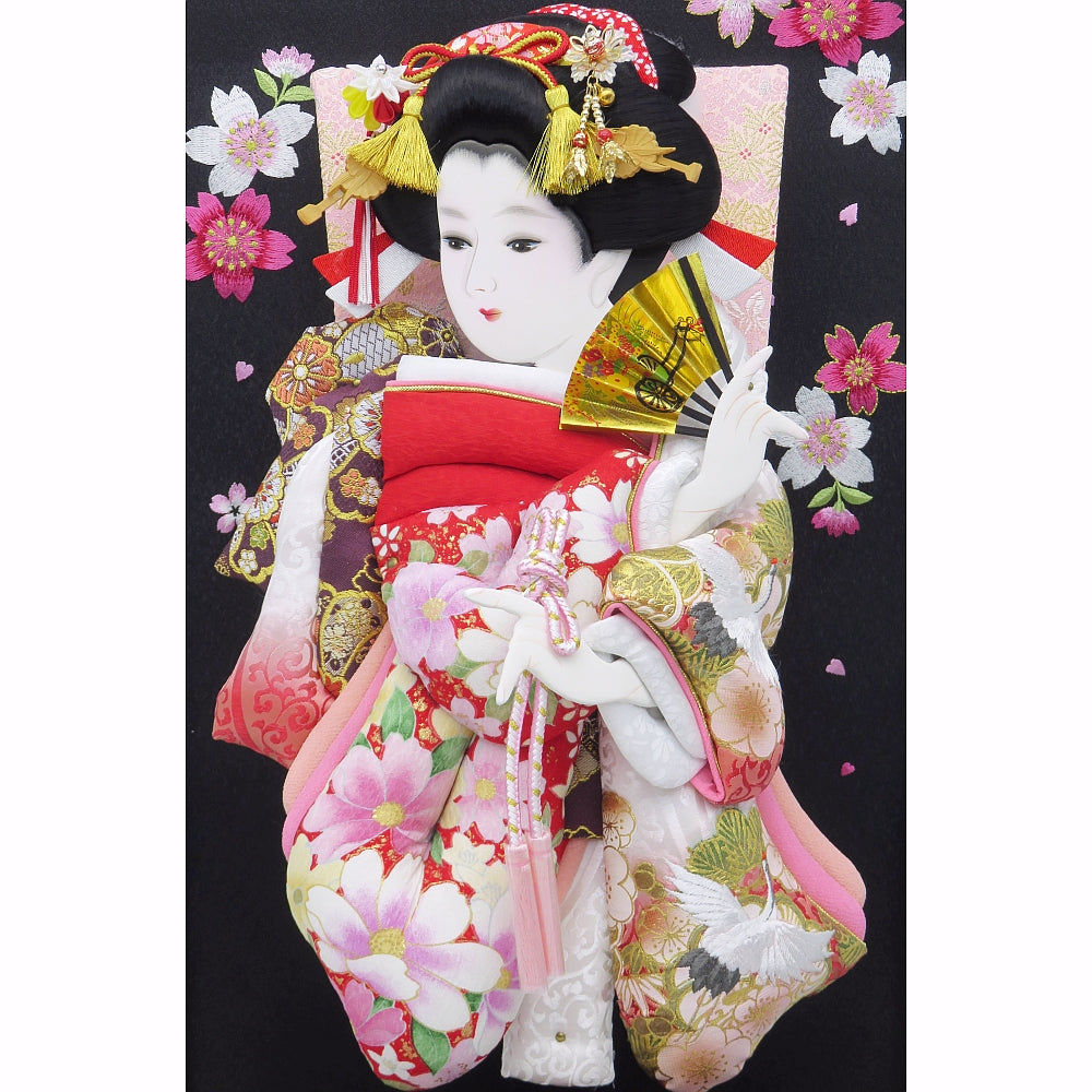 豪華で縁起の良い鶴の刺繍と優しく華やかな友禅の美しく見ごたえある振袖羽子板飾りです