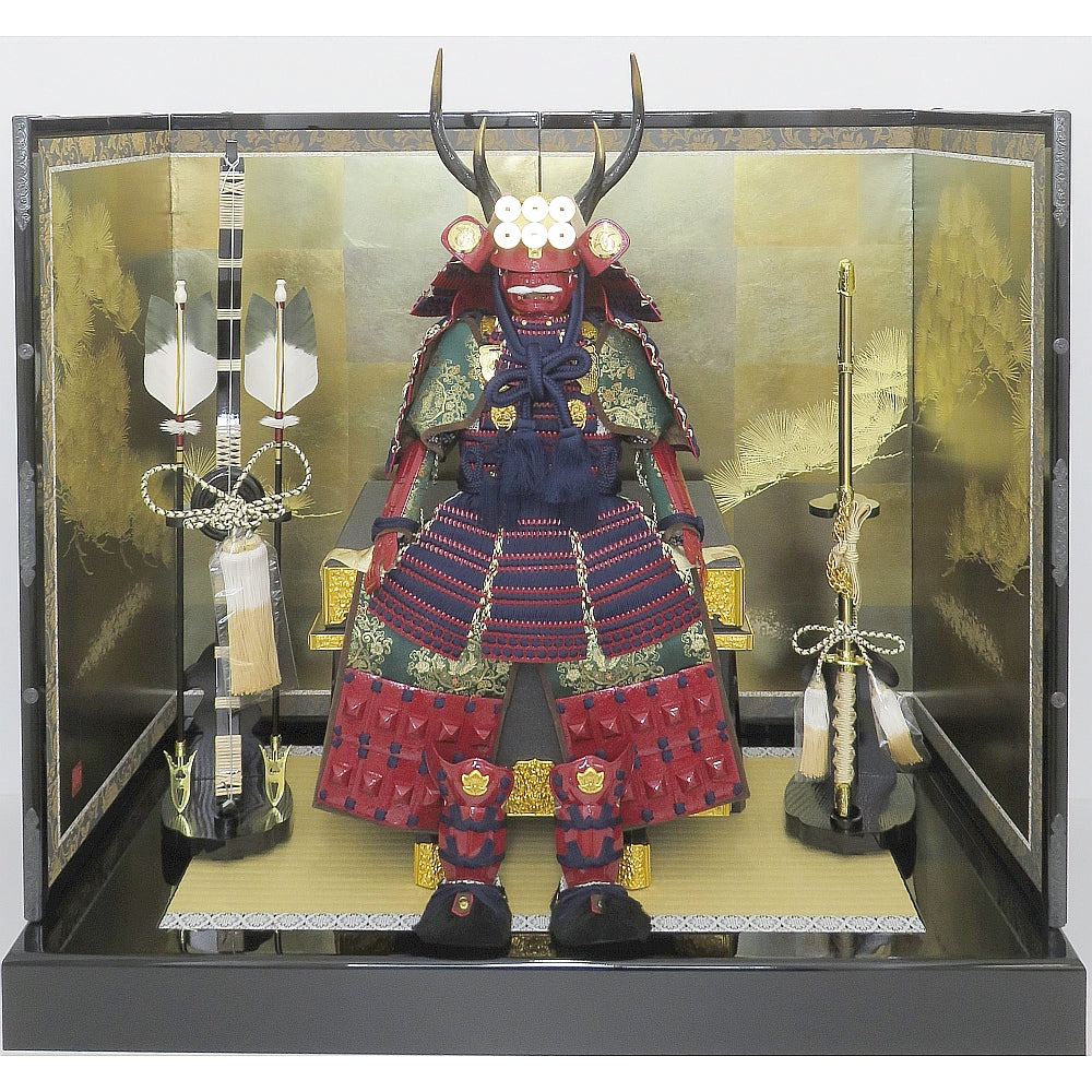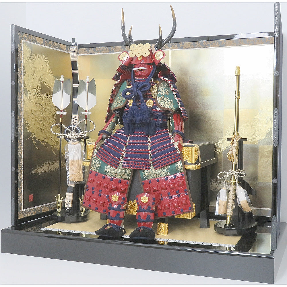 【商品名】大越忠保 10号 真田幸村公之鎧 七彩箔本金金彩松屏風平飾りセット