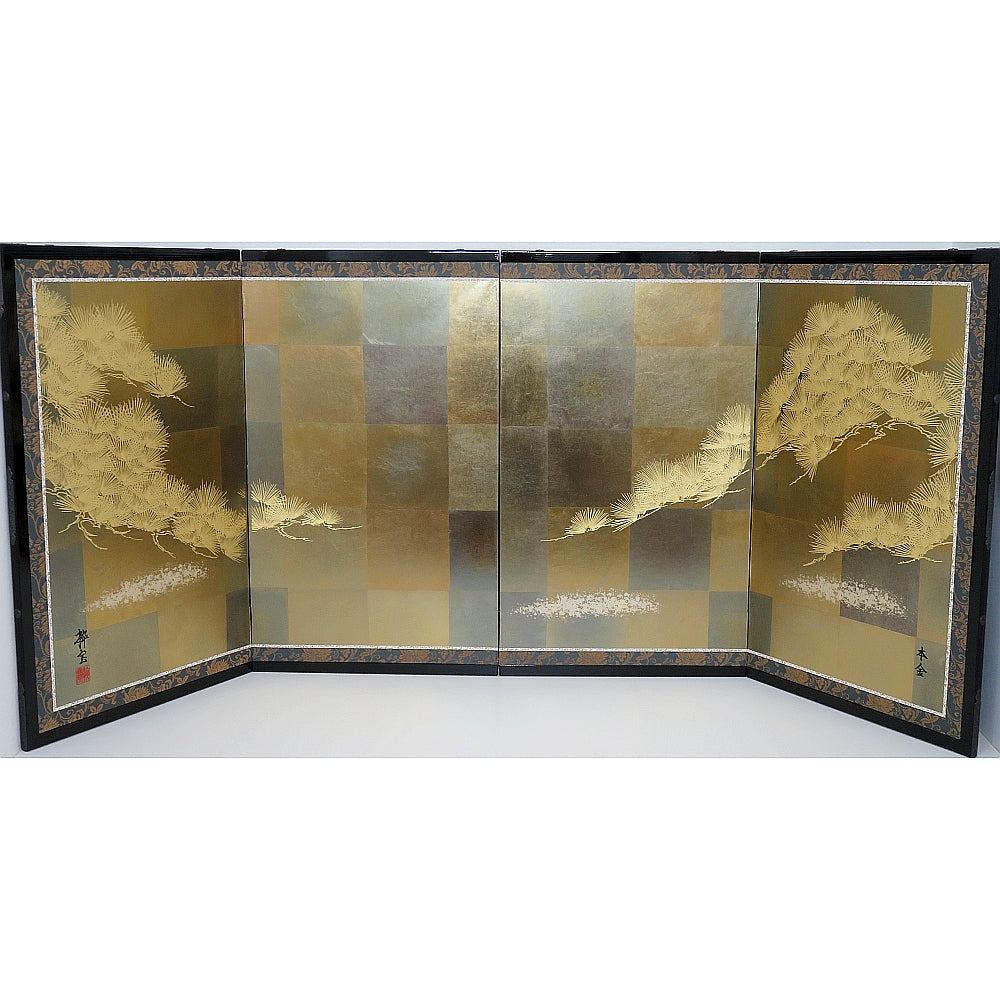 雰囲気のある本造り七彩箔本金金彩松の屛風に栄える豪華な飾りです