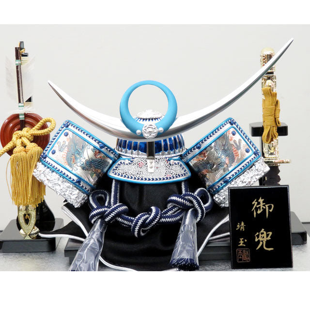【商品名】12号 青龍上杉兜 青銀ガラスケース入り