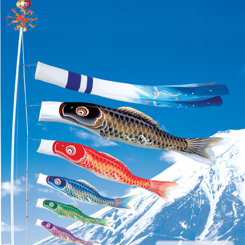 【商品サイズ】吹流し・黒鯉3.0m、赤鯉2.0m、青鯉1.5m、緑鯉1.2m、紫鯉0.9m、ポール5.3m