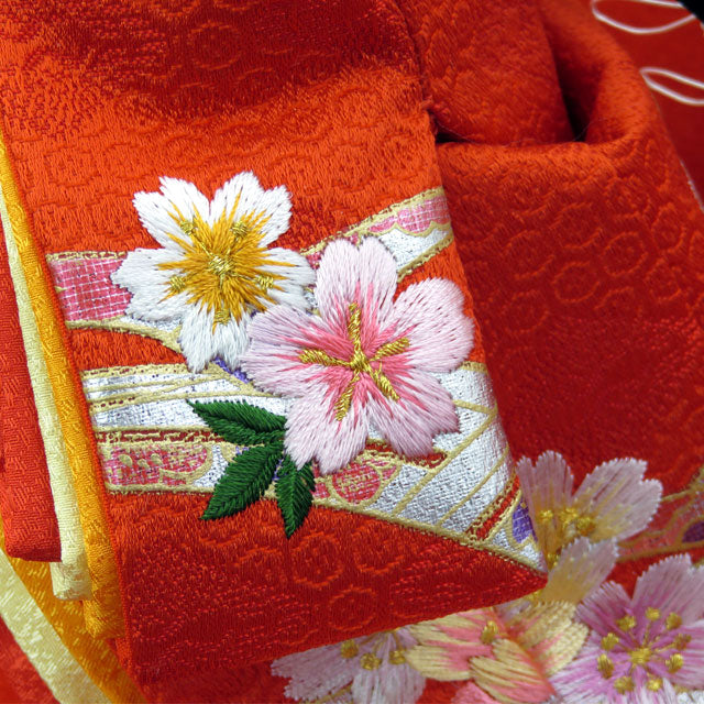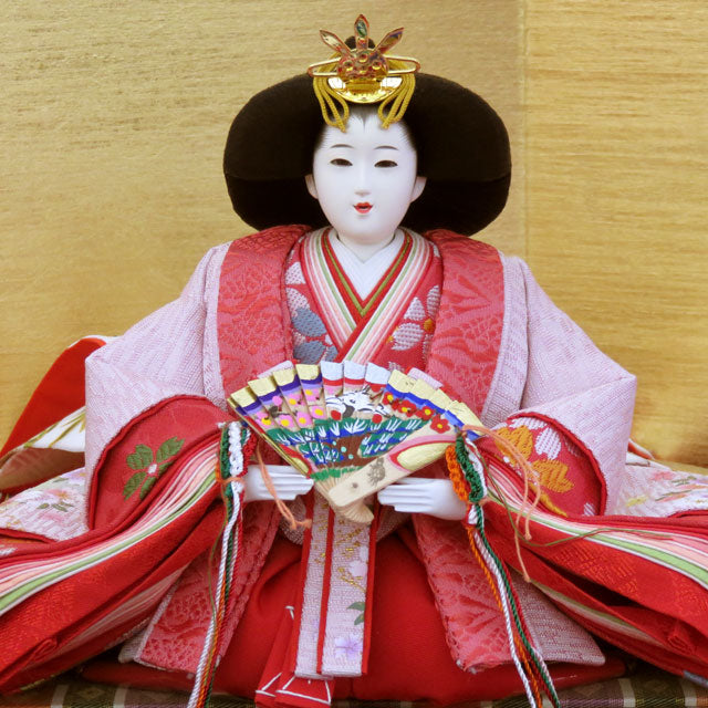 正絹衣裳に豪華な刺繍をほどこした見ごたえある上品な雛人形五人飾りです