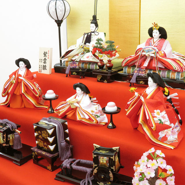 紫雲雛 正絹金彩刺繡 五人三段飾