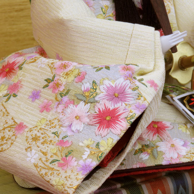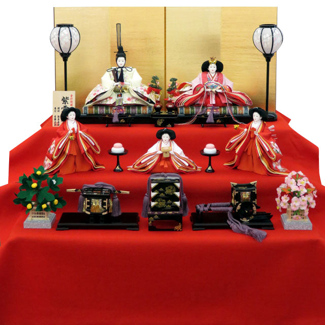 【商品名】紫雲雛 正絹金彩刺繡 五人三段飾