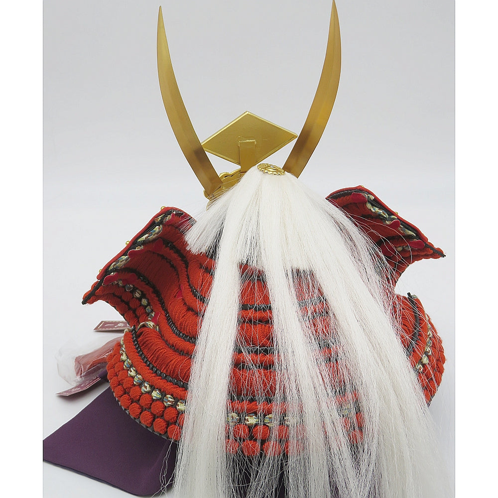 正絹赤糸縅が大変美しく、前立が凛々しい名将武田信玄公の兜飾りです